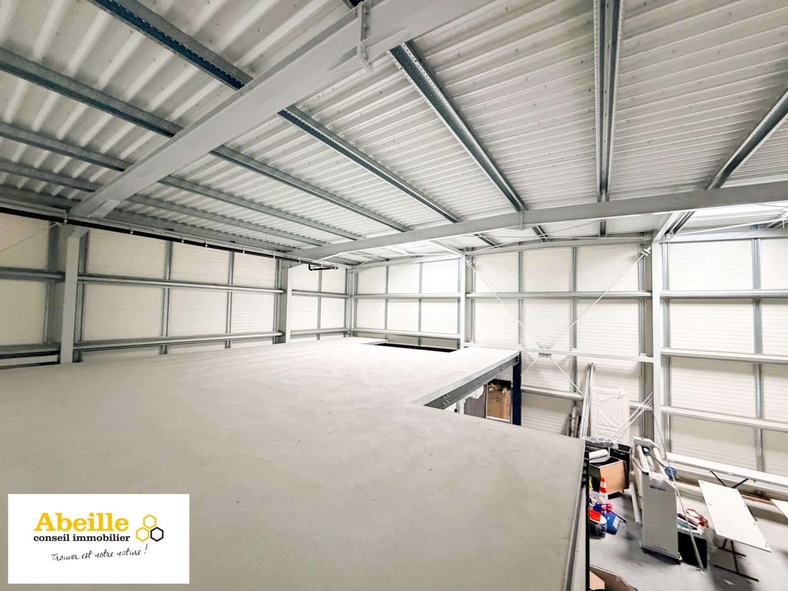 Au rez-de-chaussée : un accès par porte sectionnelle motorisée (2,80 m x 4 m) ouvrant sur un espace de stockage de 80 m² avec belle hauteur sous plafond, complété par un second espace de 110 m² situé sous mezzanine (hauteur 2,59 m).