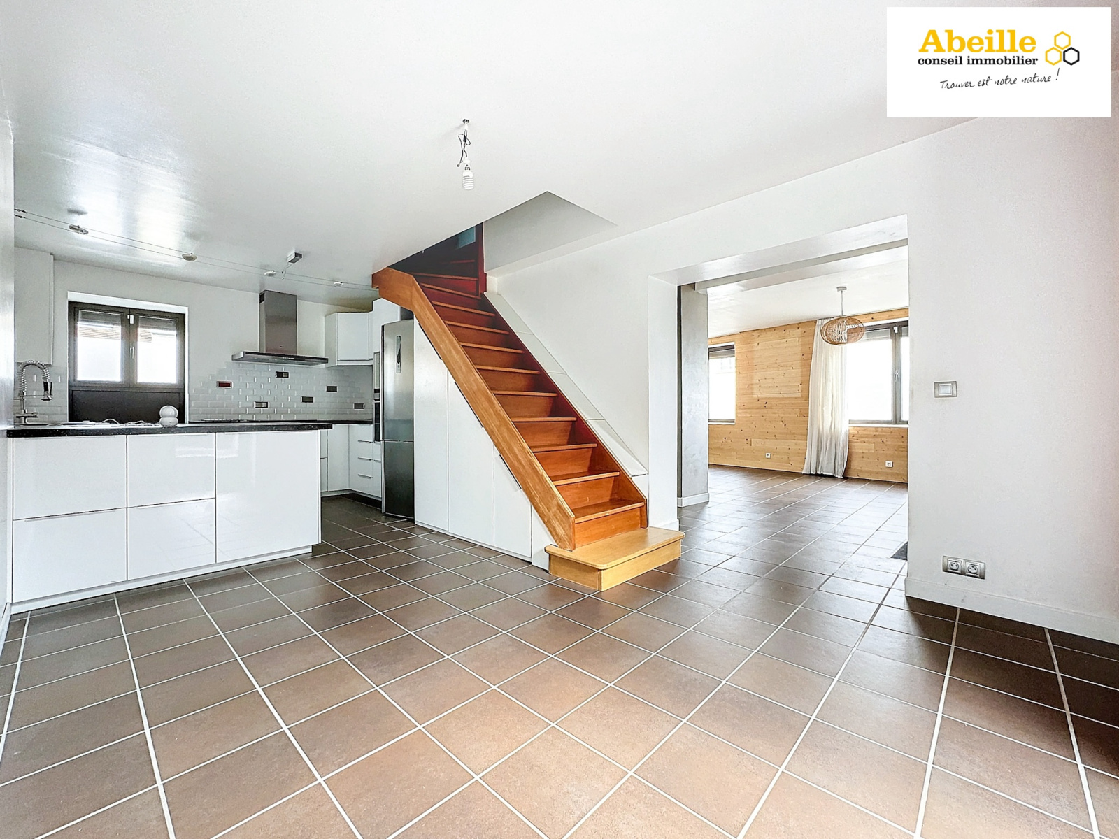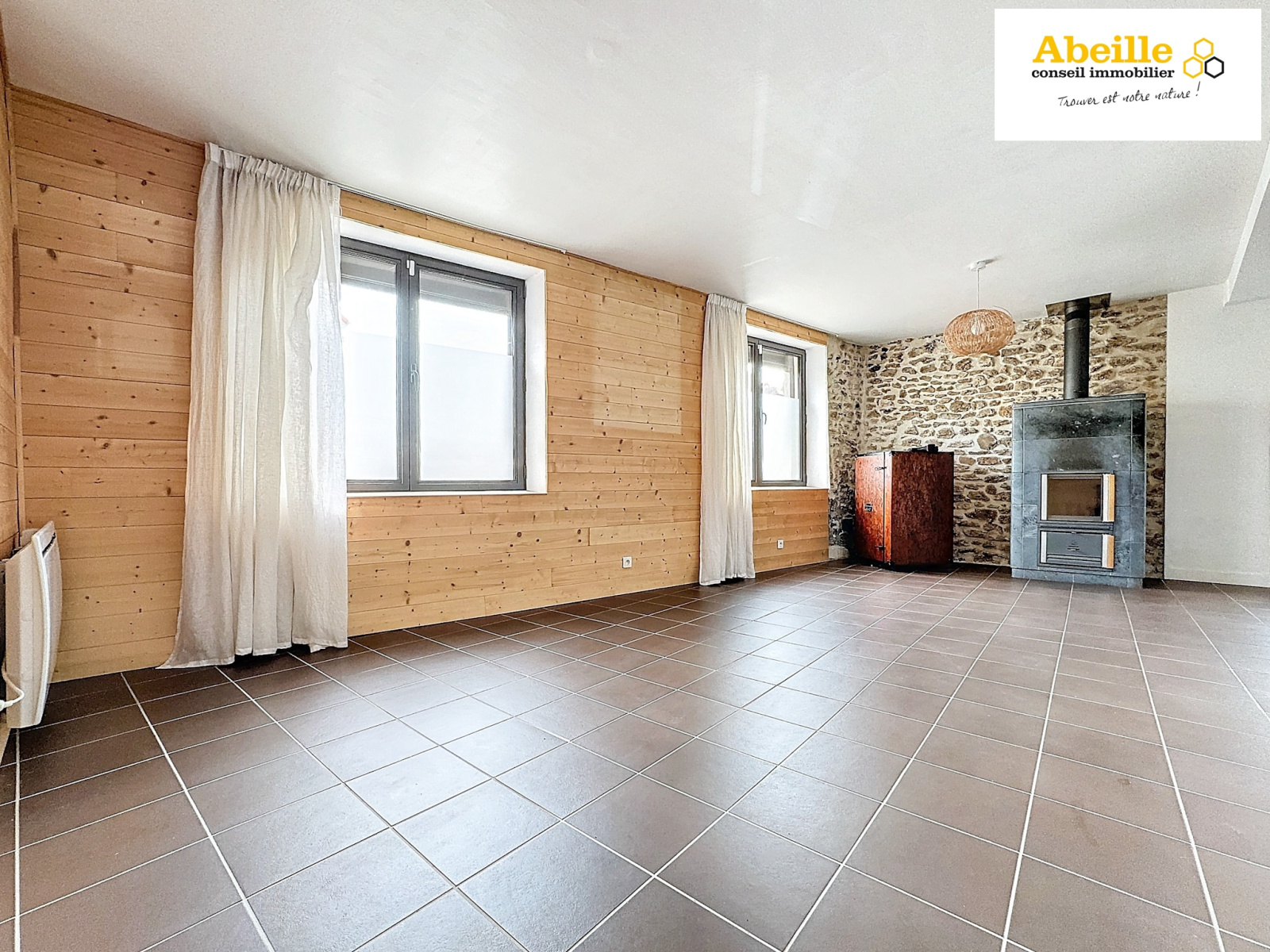 Découvrez cette charmante maison ancienne en pierres de pays, offrant 98 m² habitables (114 m² au sol). Elle se compose d'une entrée avec vestiaire, d'un salon chaleureux équipé d'un poêle à bois, et d'une cuisine aménagée et équipée ouverte sur une salle à manger conviviale, ainsi que d'un WC.