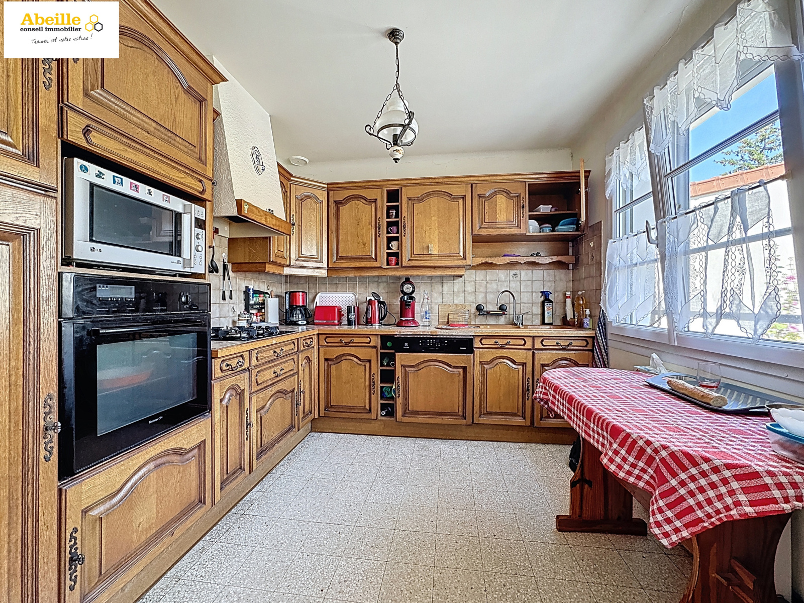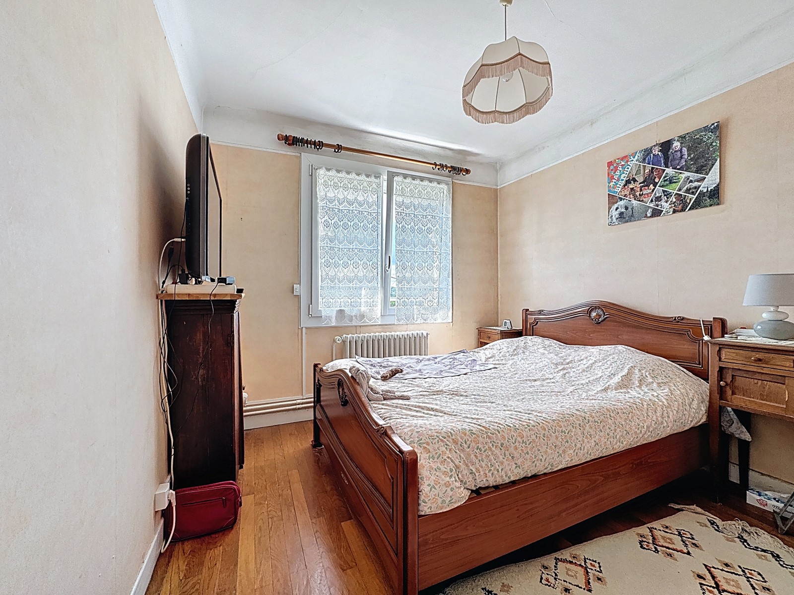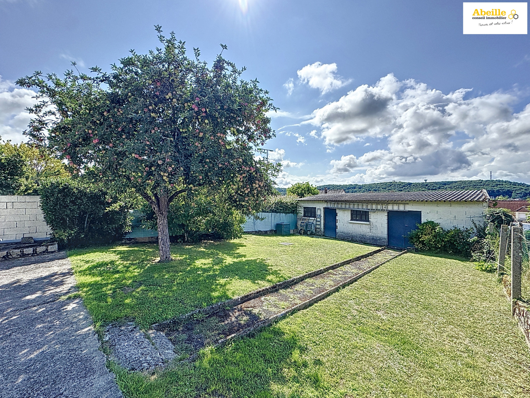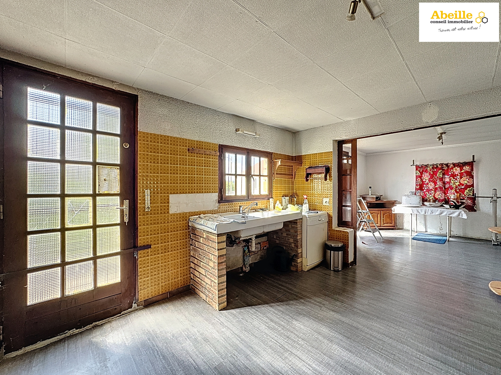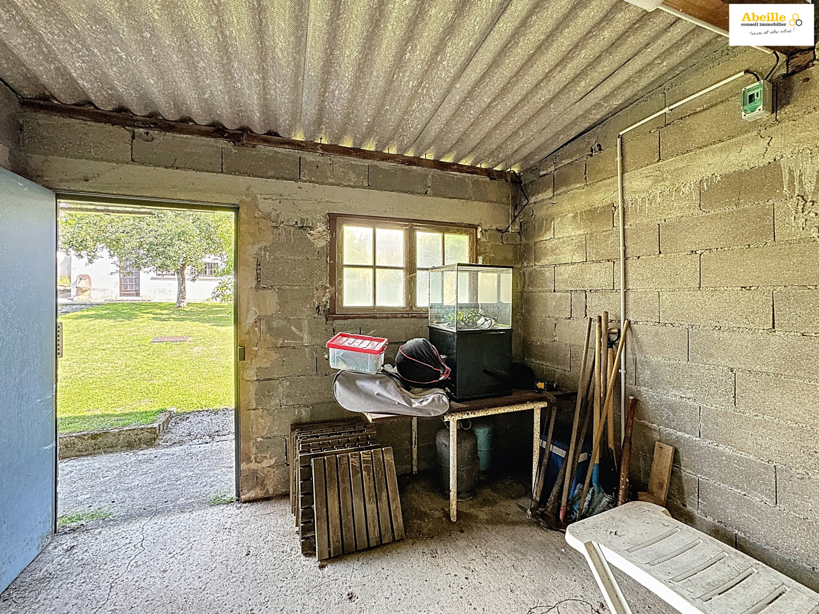 Maison traditionnelle comprenant : entrée, salon/salle à manger avec cheminée, cuisine aménagée. 2 chambres, salle de bains et wc. A l'étage combles aménageables et chambre. Sous-sol total avec garage, buanderie, cuisine d'été et cave. Atelier en dépendance. Terrain clos de 470m2.