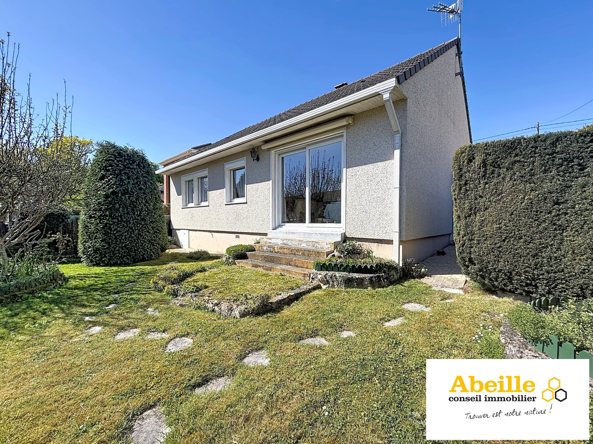 Maison individuelle de plain-pied de 85 m2 hab. comprenant : patio, entrée avec placard, salon/salle à manger avec chaminée et baie vitrée, cuisine aménagée équipée, wc, salle de douches, et trois chambres (9,2 m2, 14 m2, et 10,5 m2). En dépendance : buanderie, garage d'environ 30 m2. Cave. Exposition sud. Chauffage gaz de ville. Double vitrage avec volets roulants electrique. Le tout sur 564 m2 de terrain clos et paysagé.