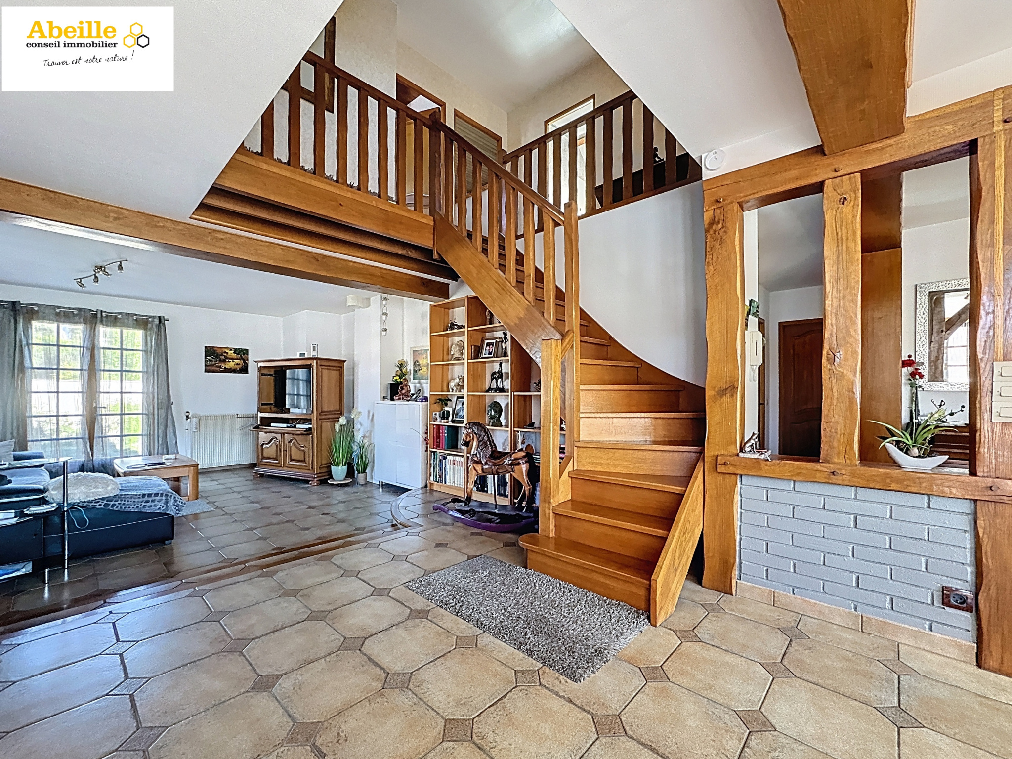 Maisson de 155m2 habitable sur sous-sol total comprenant : entrée, salle à manger/séjour, cuisine aménagée équipée, salle de bains, wc et chambre. A l'étage mezzanine, 3 chambres. Bureau, Wc et salle d'eau. Terrain clos et arboré de 863m2. Sous-sol total, beaux volumes, nouveauté à découvrir !