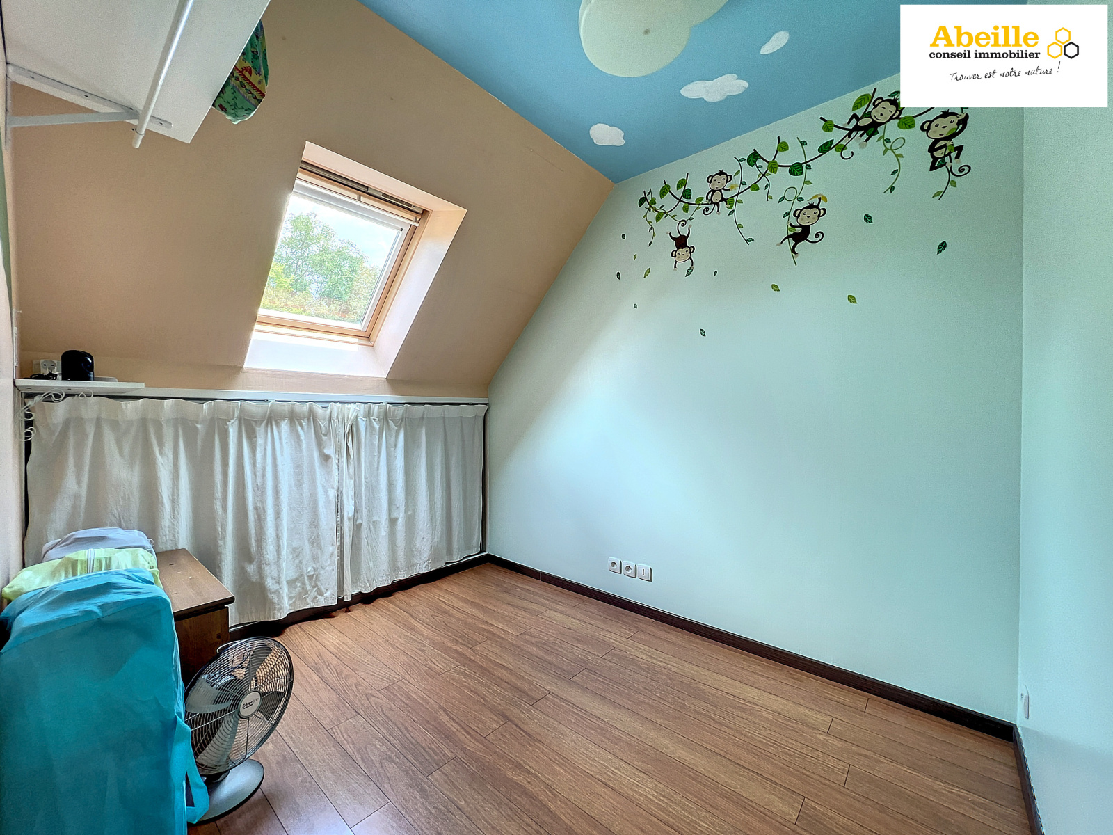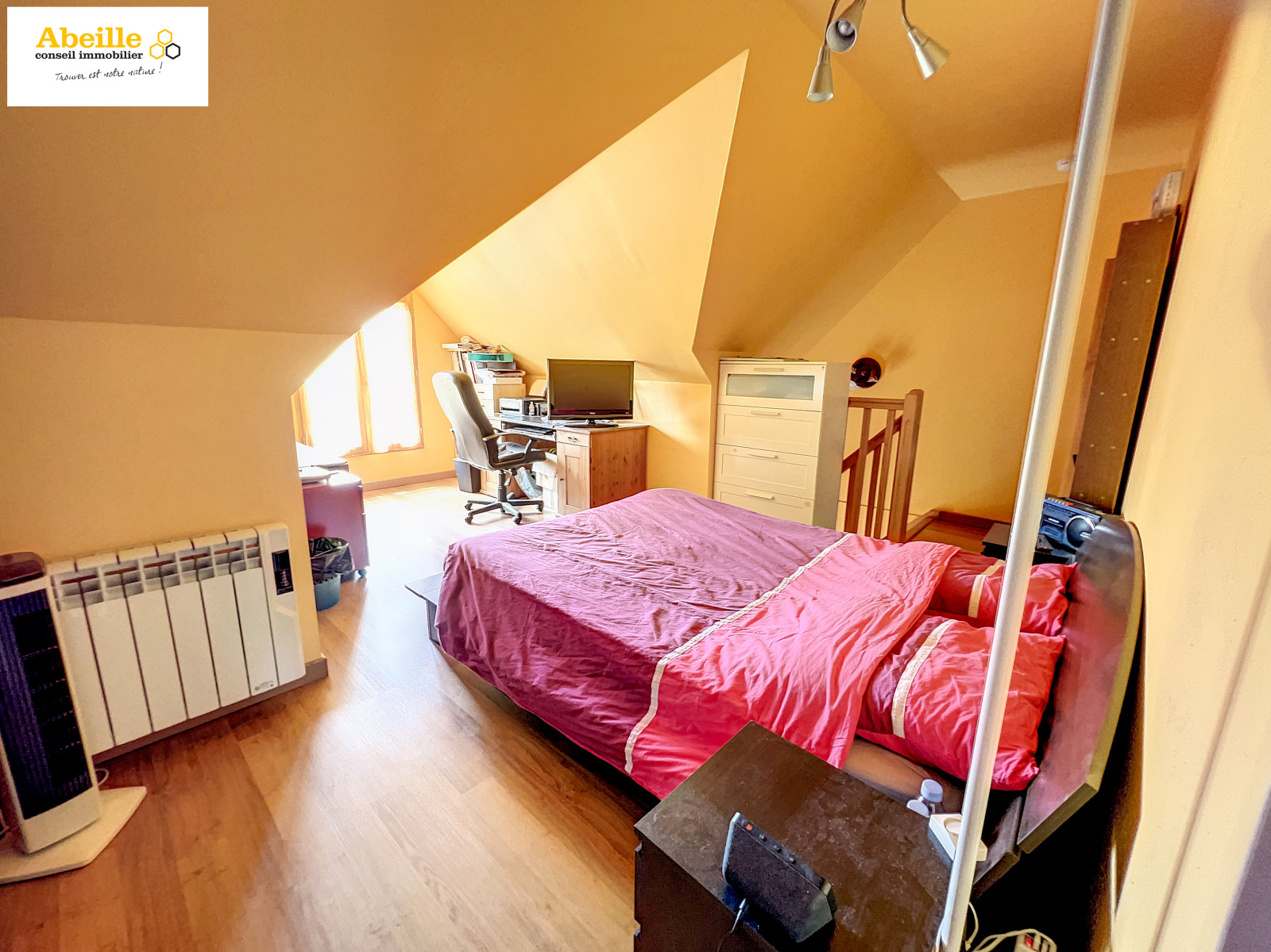 À l'étage, vous trouverez un dégagement, un bureau, trois chambres spacieuses, une salle de bains avec WC, ainsi qu'une salle de douche.