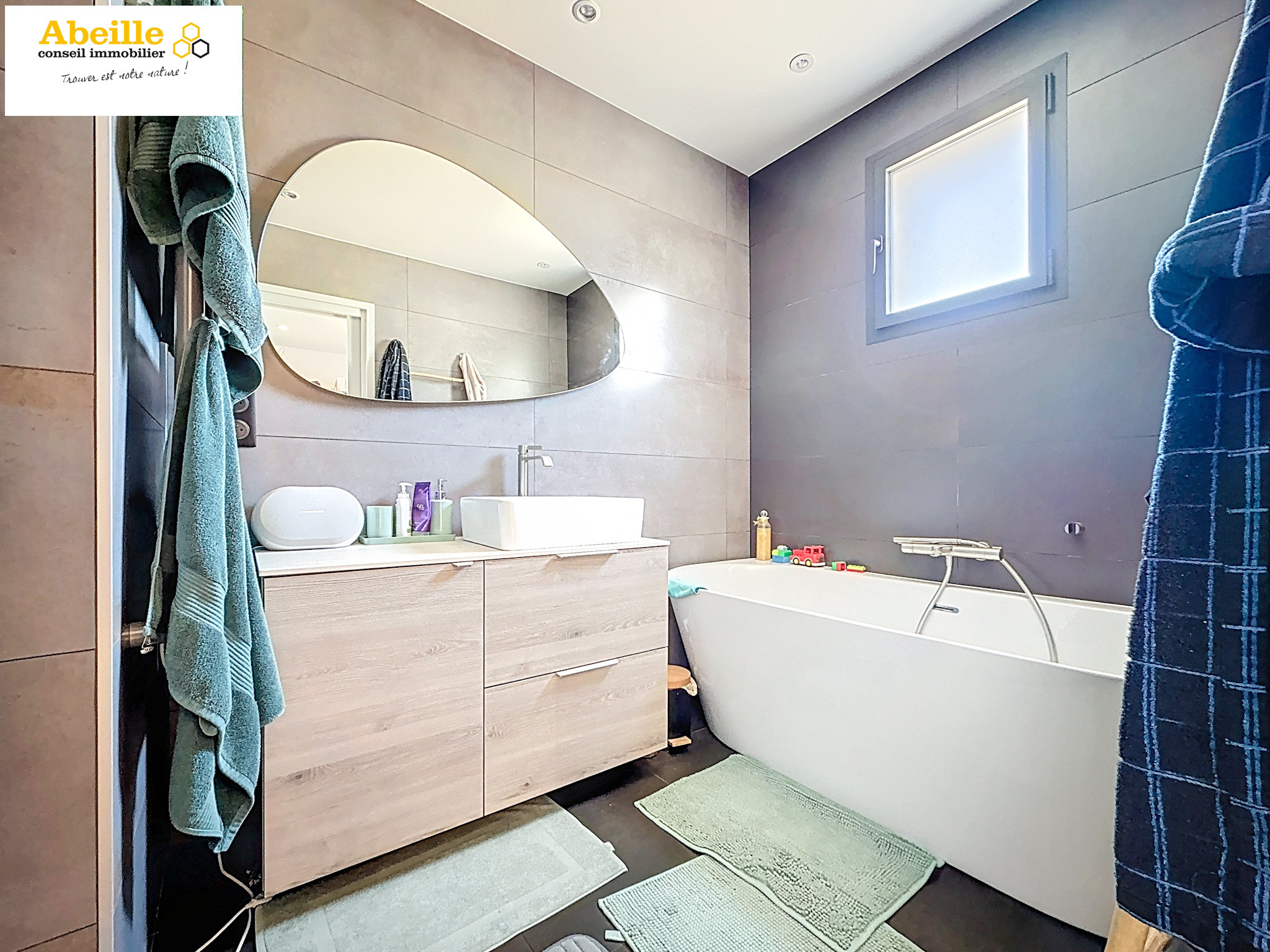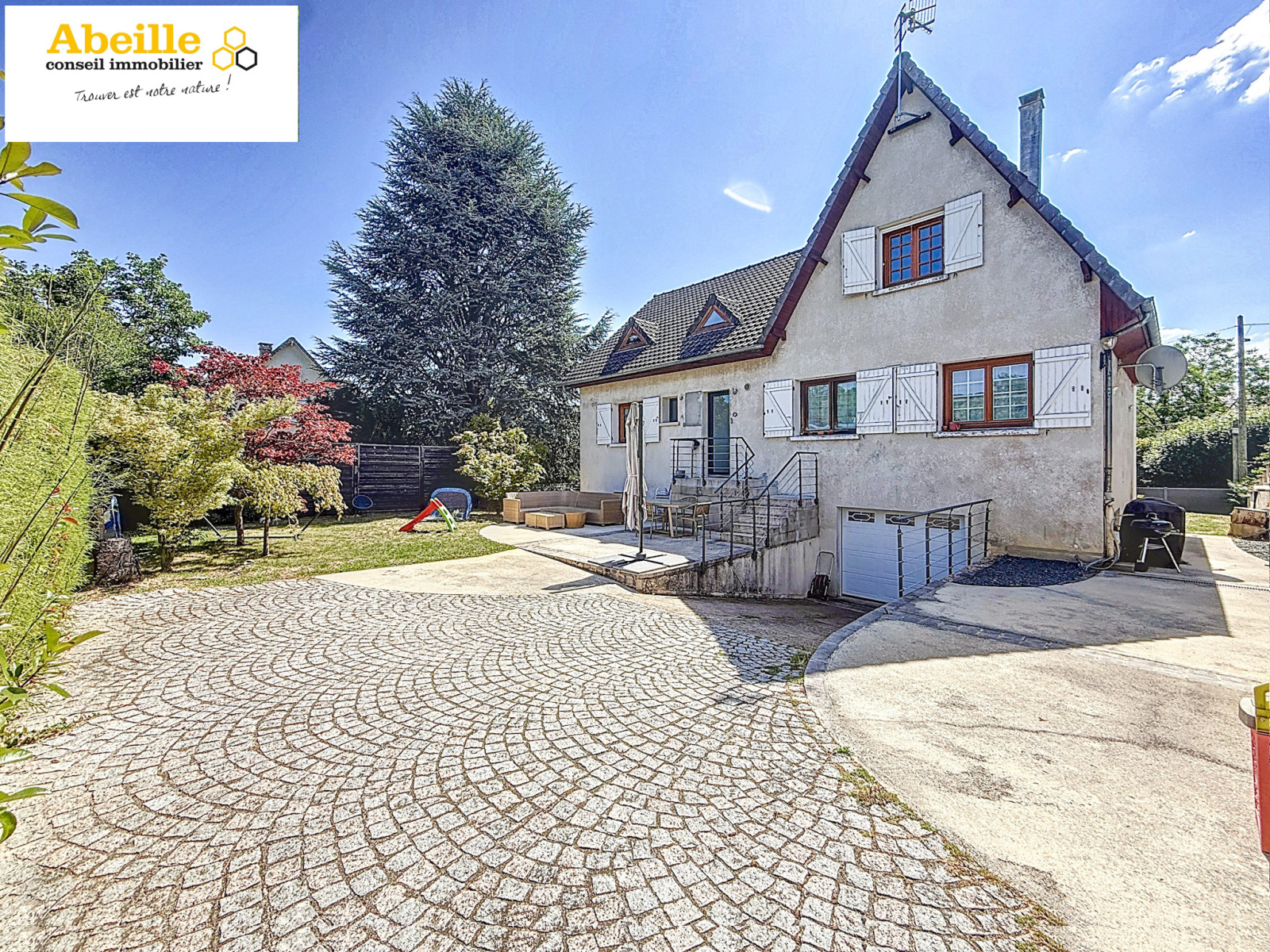 Le tout est implanté sur un terrain arboré de 616 m², à seulement 5 minutes à pied du centre-ville et 10 minutes de la gare, facilitant ainsi les déplacements quotidiens.