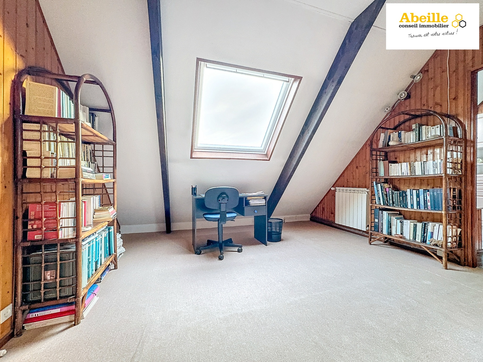 À l’étage, un dégagement pouvant servir de bureau, une chambre, une salle de bains avec douche et toilettes, ainsi qu’un bureau supplémentaire offrent un espace confortable et fonctionnel.