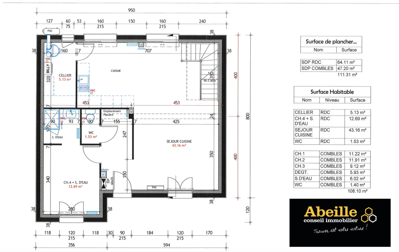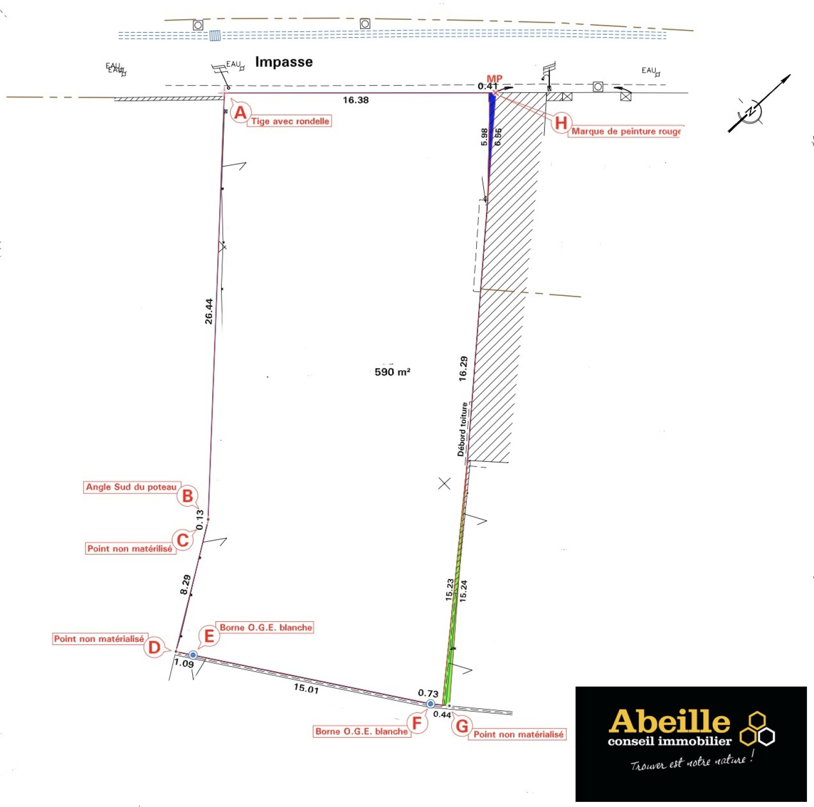 Terrain à batir plat de 590 m2 avec permis de construire accordé pour une maison de 108,10 m2 hab, façade sur rue de 16m, à viabiliser.