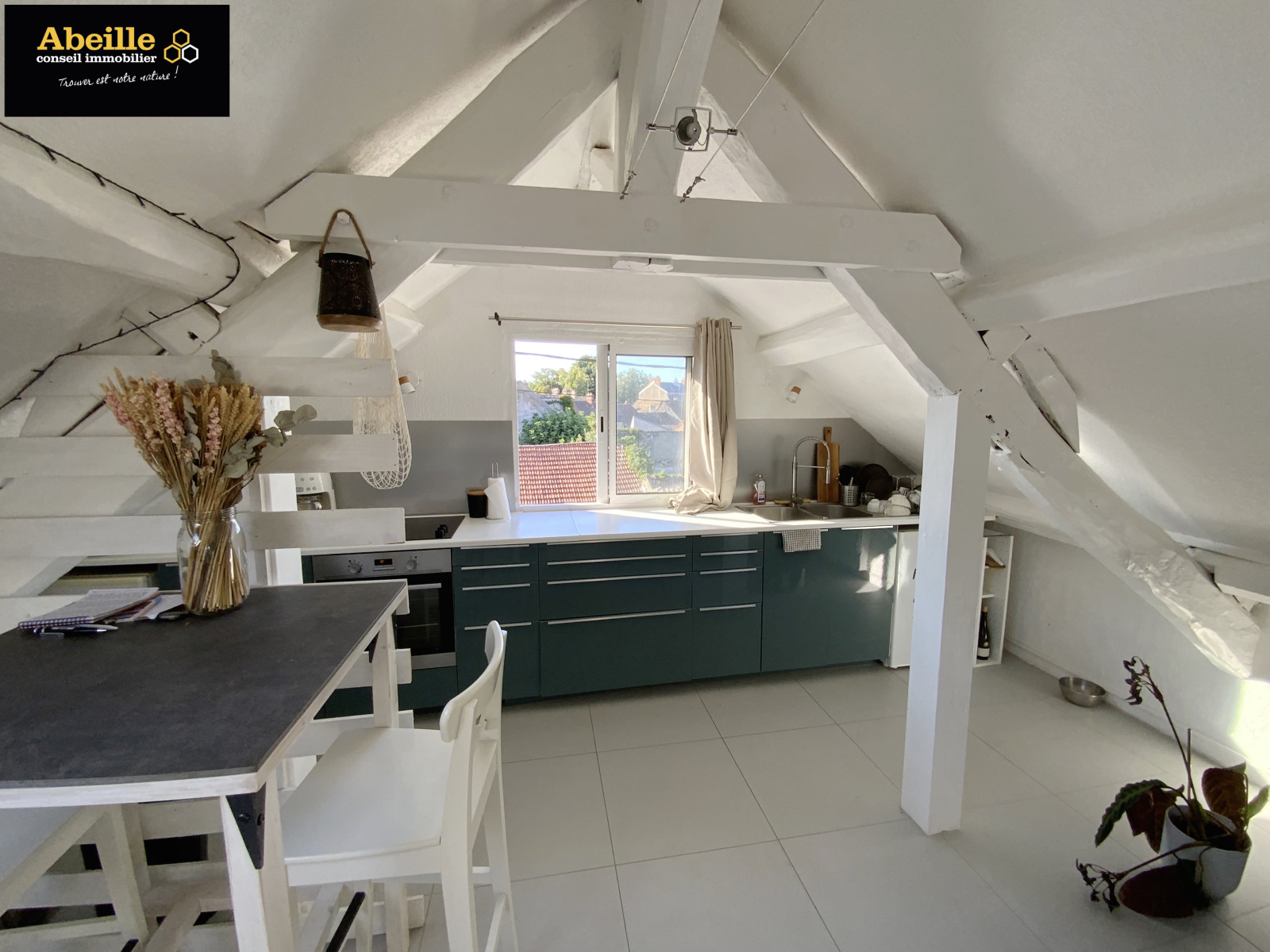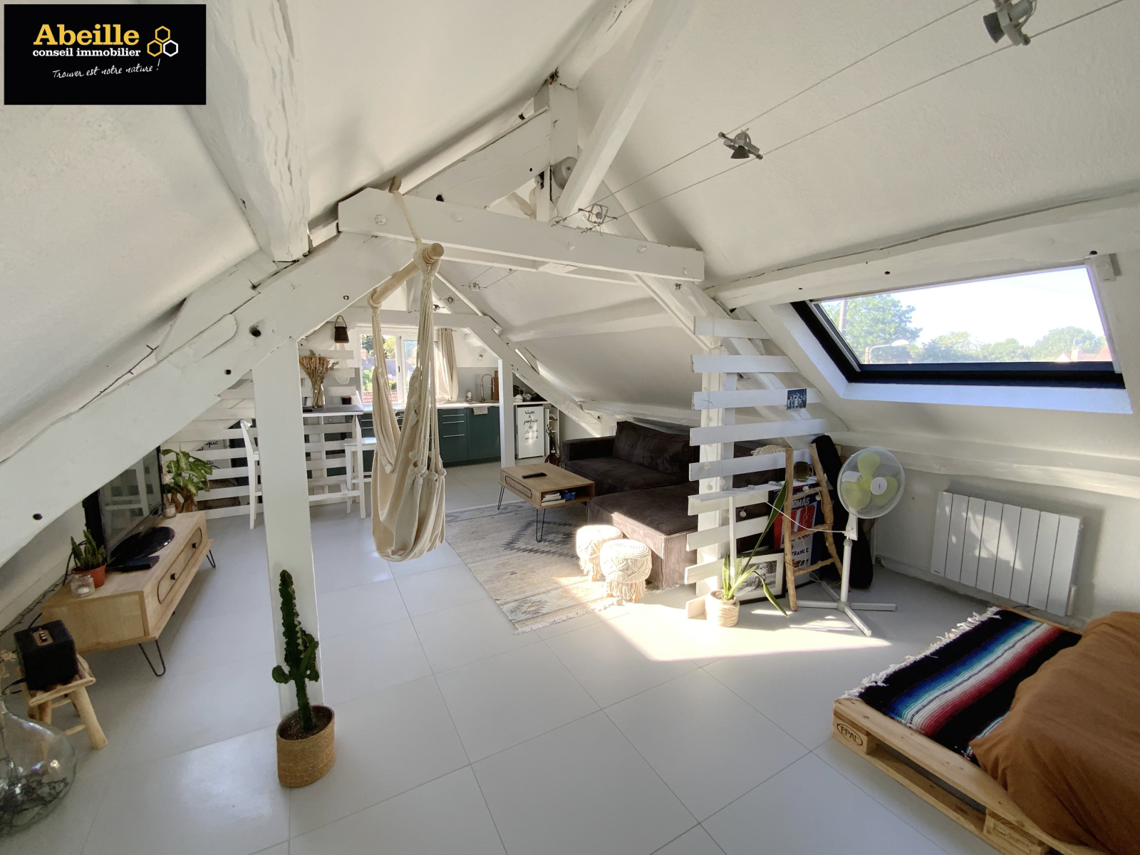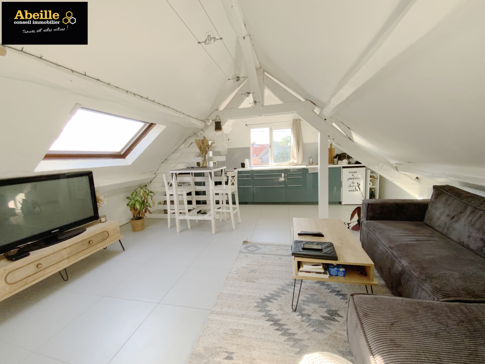 Appartement de type F1 Bis de 33m2 habitable et de 70m2 au sol comprenant : entrée, SdB/Wc, salon ouvert sur cuisine aménagée et équipée, coin nuit et grenier/débarras. Place de parking privative, cave commune.