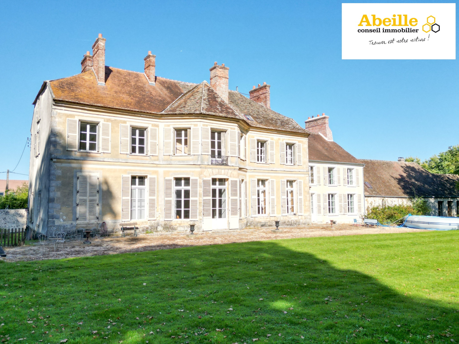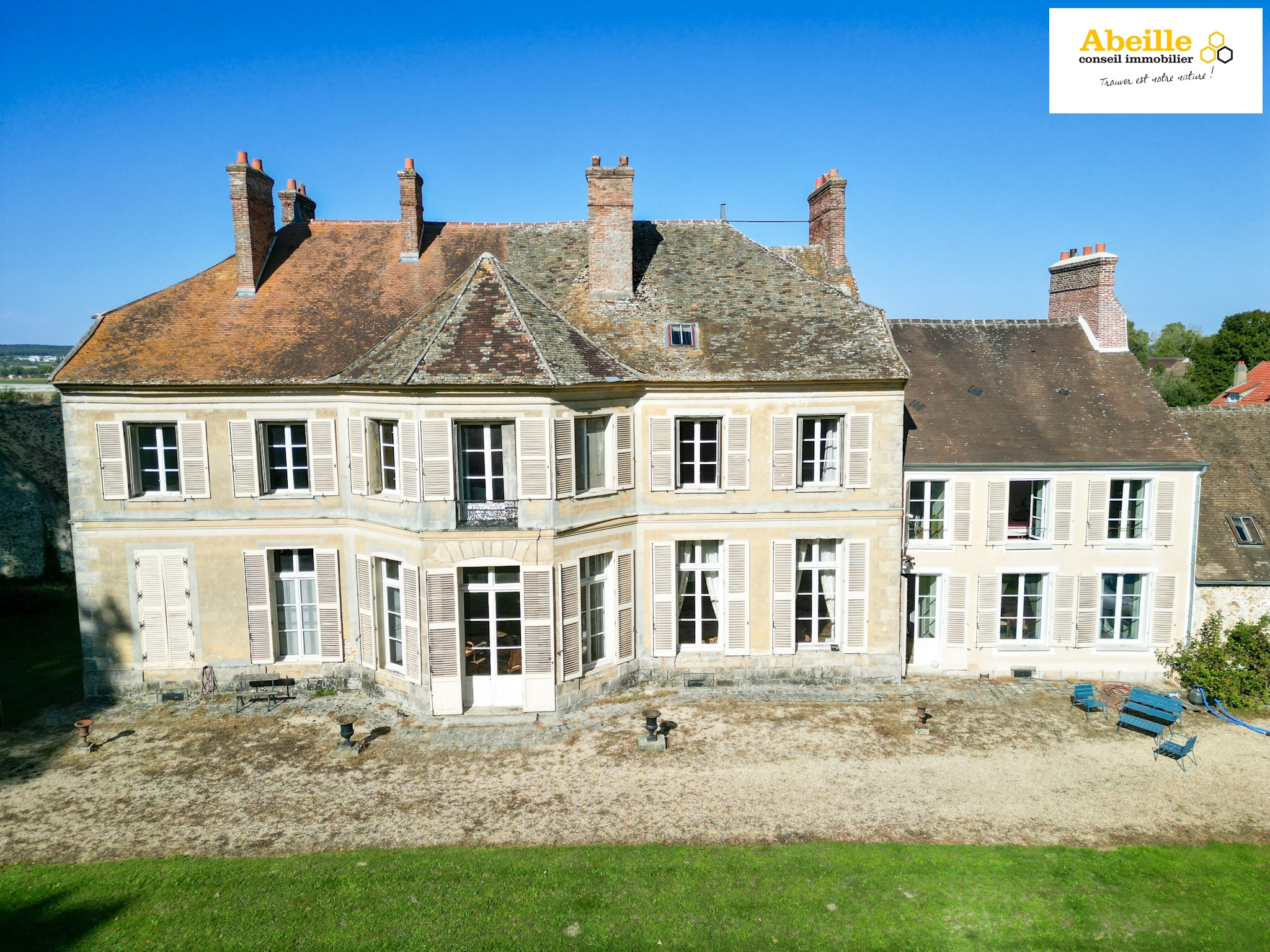 Dès l’entrée, une cour d’honneur pavée mène à la maison principale d’environ 500 m² habitables. Le rez-de-chaussée se distingue par ses volumes généreux et ses éléments d’époque : un vaste hall d’entrée, plusieurs salons aux parquets en point de Hongrie, boiseries et trumeaux peints, une salle à manger de caractère, une cuisine, ainsi que diverses pièces de service. À l’étage, neuf chambres, deux salles de bains et de nombreux espaces annexes composent un ensemble au charme unique. Le dernier niveau, sous combles, offre un potentiel d’aménagement exceptionnel d’environ 240 m².