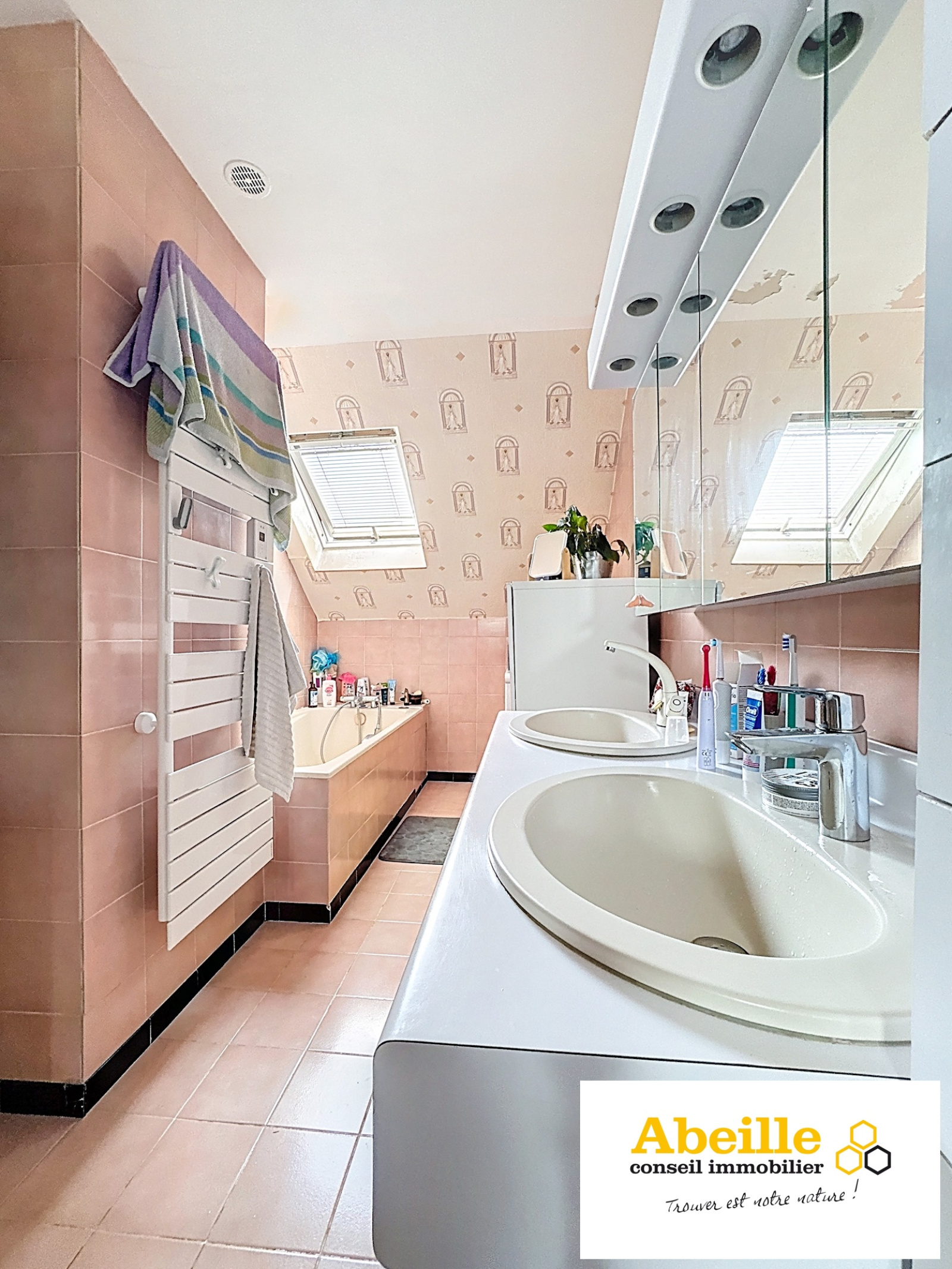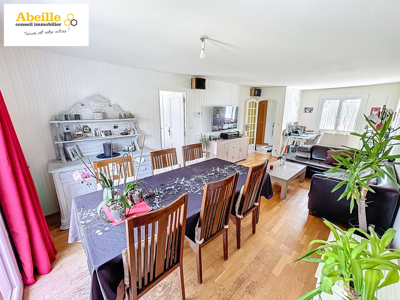 Située dans un quartier résidentiel recherché, cette maison traditionnelle de 1981 offre 87 m² habitables sur une parcelle close et arborée de 208 m². Elle comprend au rez-de-chaussée une entrée, un séjour lumineux avec accès direct à la terrasse, une cuisine aménagée et équipée ainsi qu’un WC indépendant. À l’étage, un palier dessert trois chambres avec placards, une salle de bains et un rangement. En complément : une cave totale de 60 m², un garage attenant de 17,5 m², le chauffage au gaz de ville, des fenêtres en double vitrage PVC et une terrasse agréable. Située à seulement 200 m des écoles, 300 m du collège et proche des commerces, cette maison offre un cadre de vie paisible et pratique, parfait pour une famille.