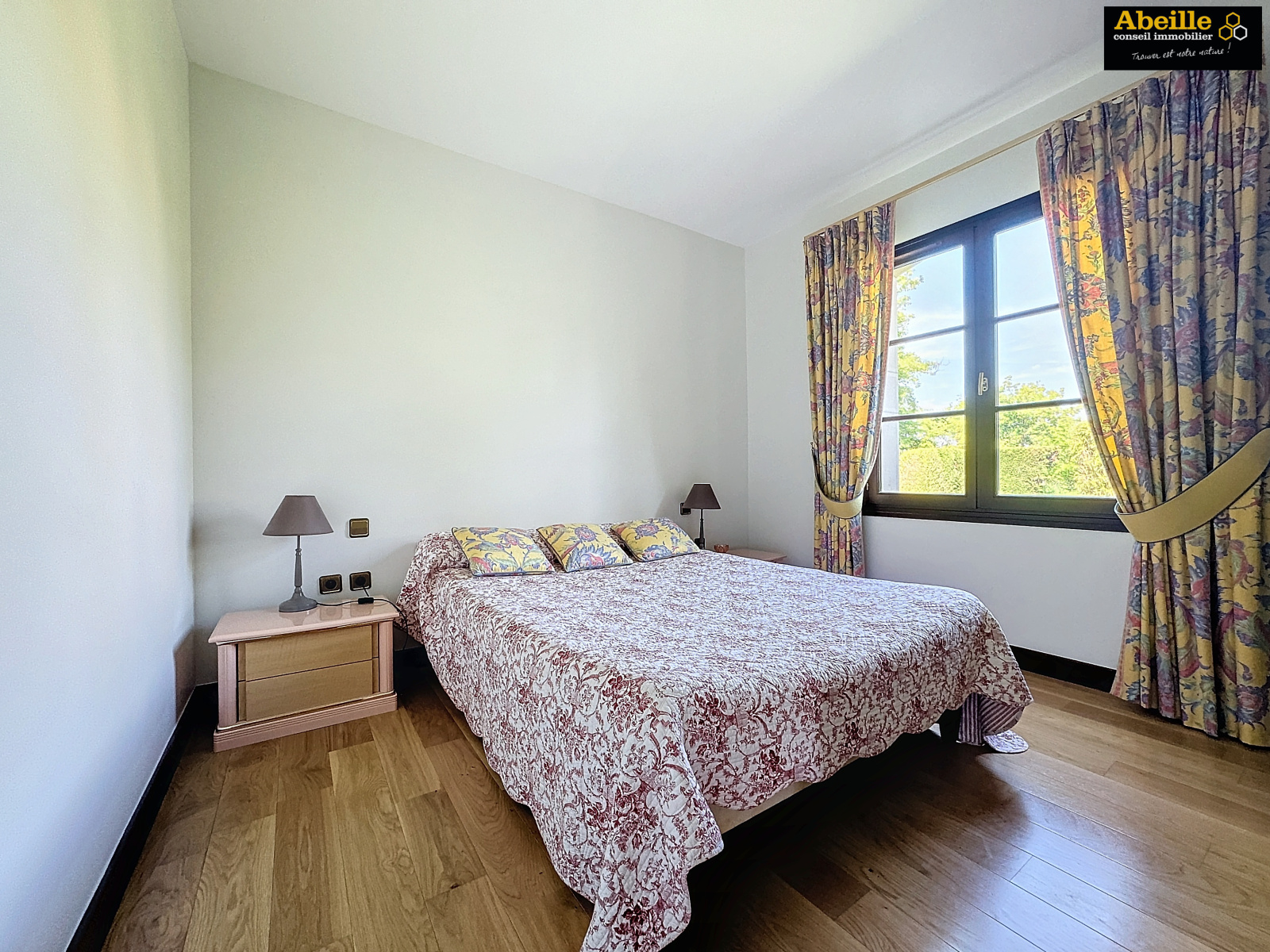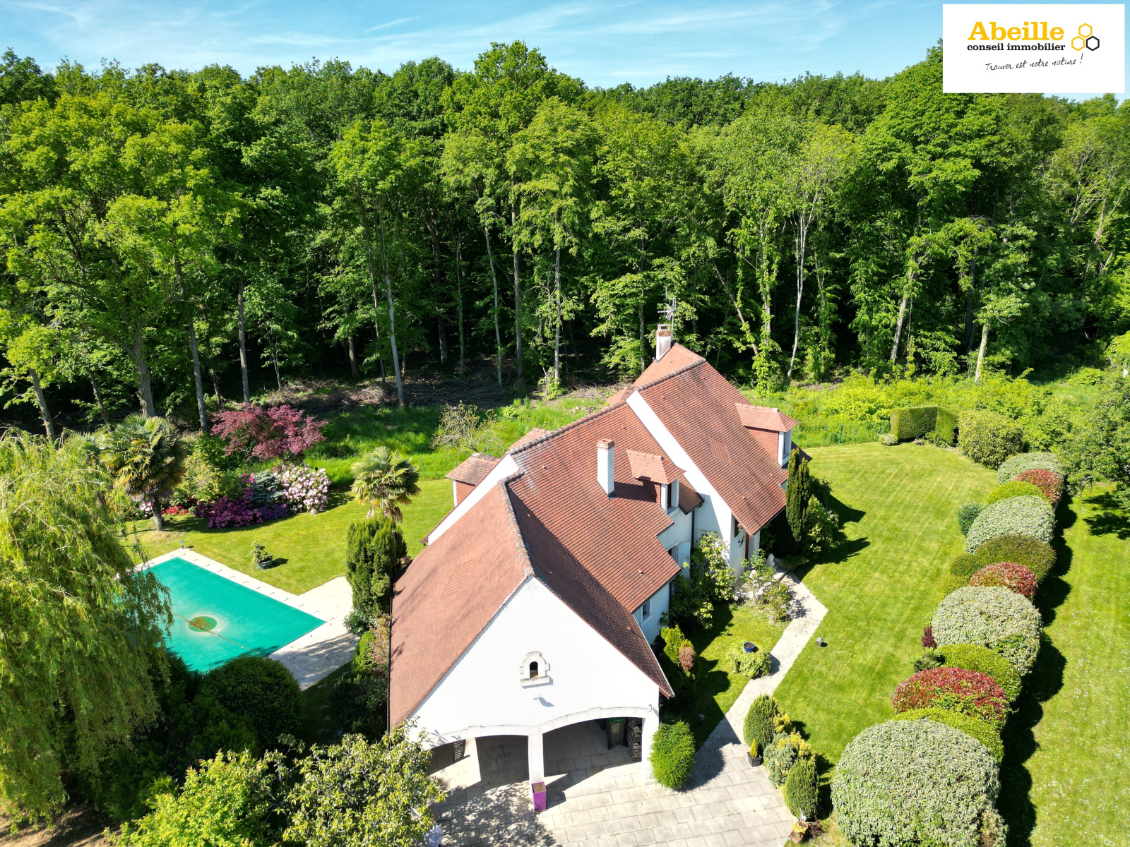 Maison d'architecte composée d'un hall d'entrée, d'une cuisine ouverte sur une grande piéce de vie, d'une arriére cuisine. Une chambre avec salle d'eau et Wc. A l'étage 3 chambres dont une grande suite parentale ( dressing, SdB et douche, wc), salle d'eau et wc. Sous sol avec buanderie, cave et salle de sport. Terrain clos de 1495m2 avec garage 2 voitures, piscine chauffée. Nichée au coeur d'un village recherché à 35 Km au Sud ouest de Paris.