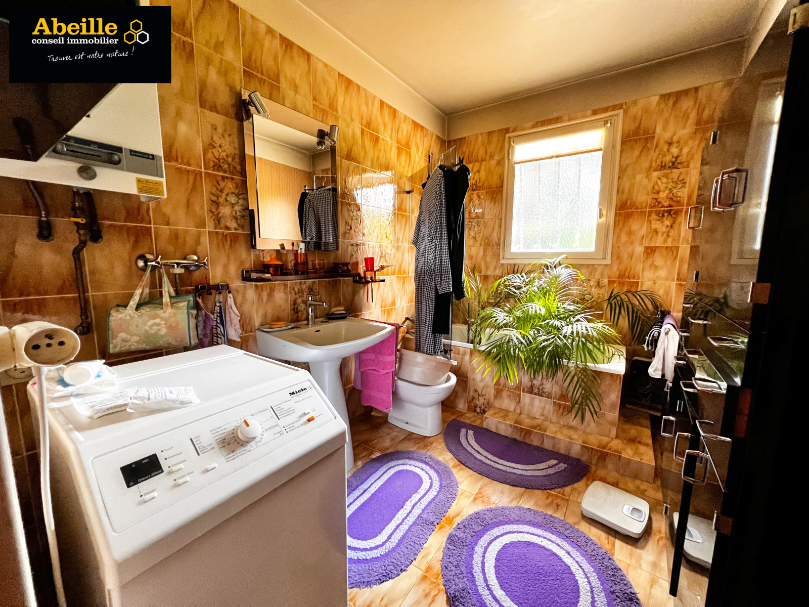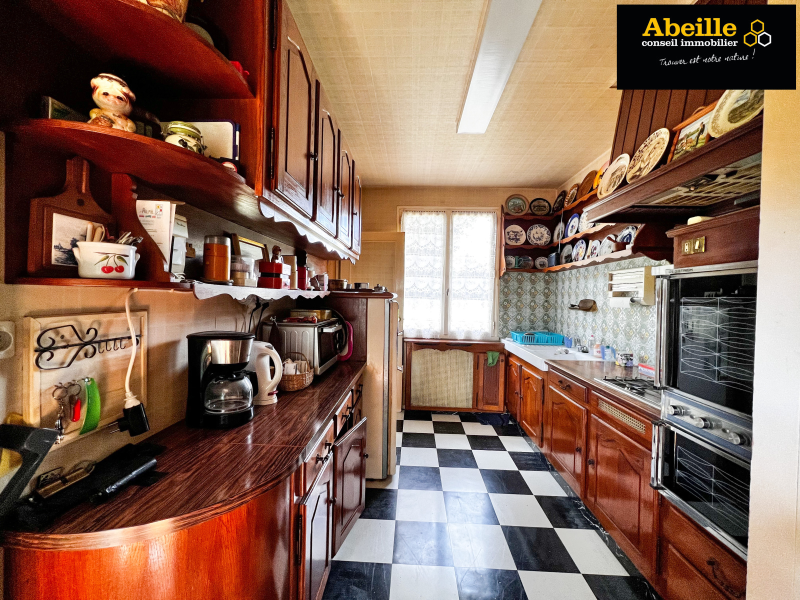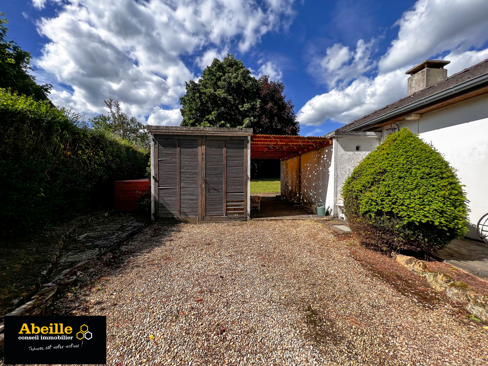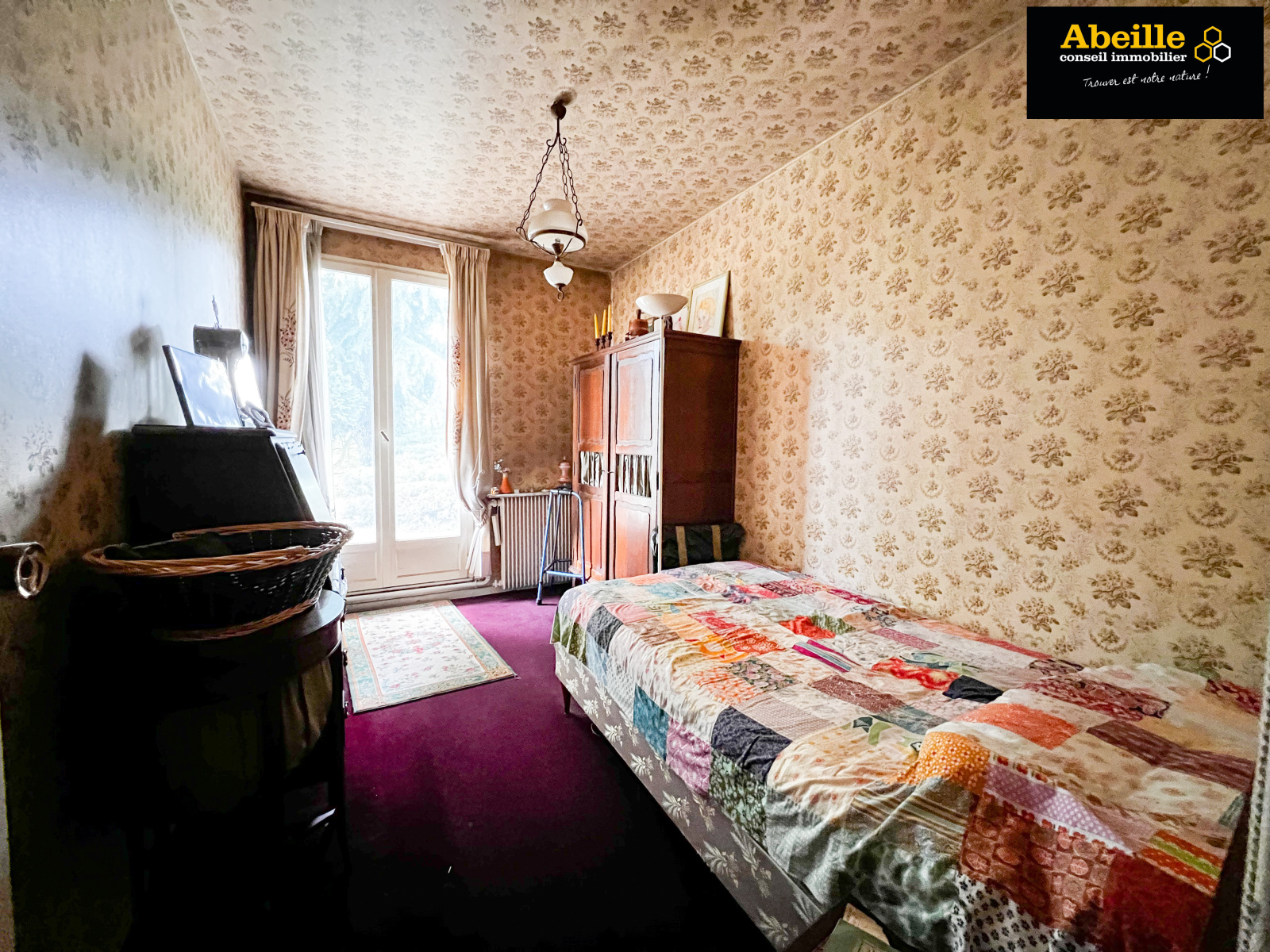 Edifiée en 1968, maison individuelle de plain-pied de 112 m2 hab. offrant : entrée avec placard, dégagement, cuisine aménagée équipée, cellier, salon/salle à manger avec cheminée, cinq chambres, salle de bains, wc, cabinet de toilette. Attenant : garage 1 voiture. C.c. gaz de ville. Expo sud. Le tout sur un terrain de 1202 m2. Travaux à prévoir. Le bien bénéficie de la jouissance d'un parc et de deux courts de tennis.