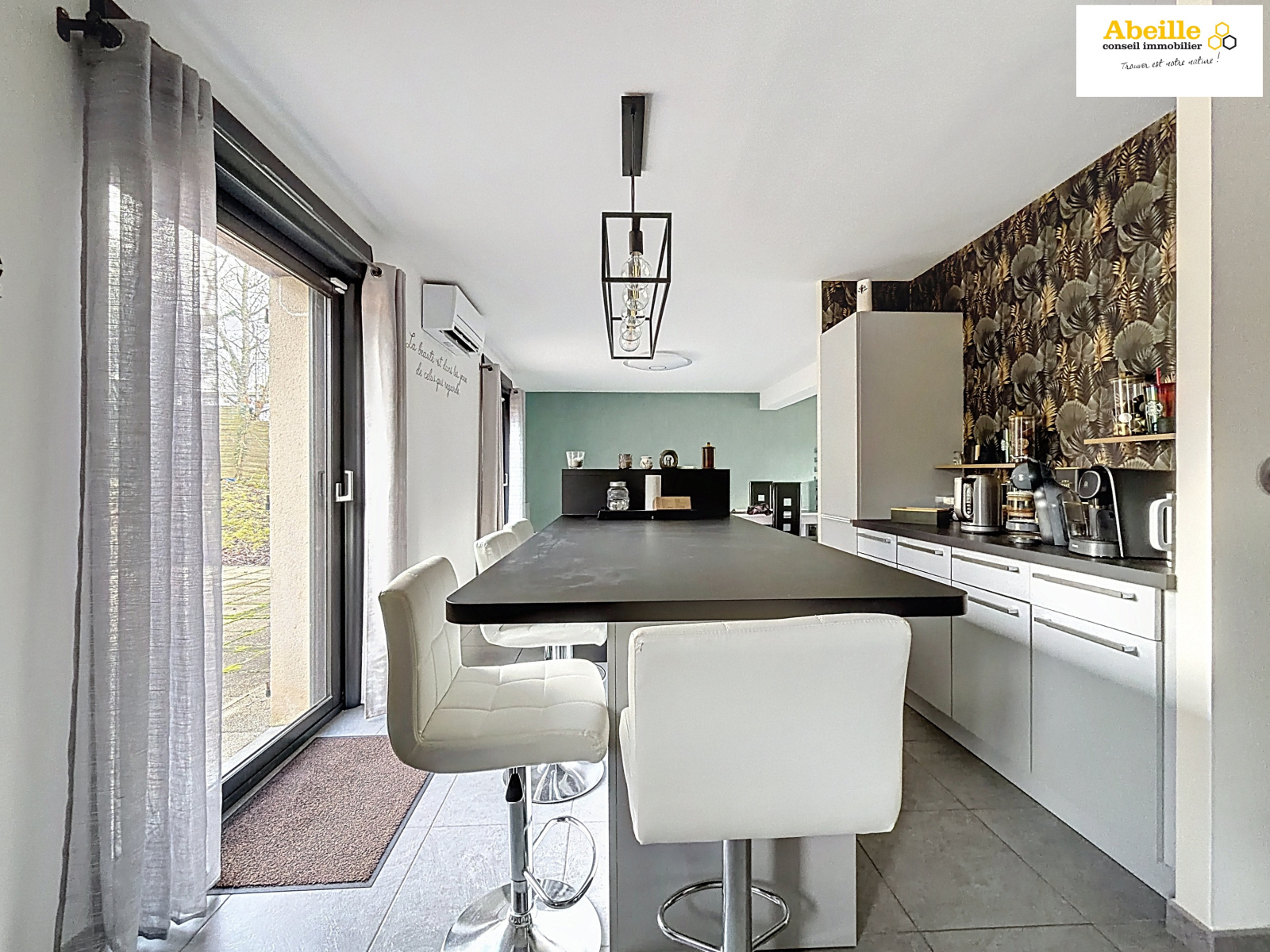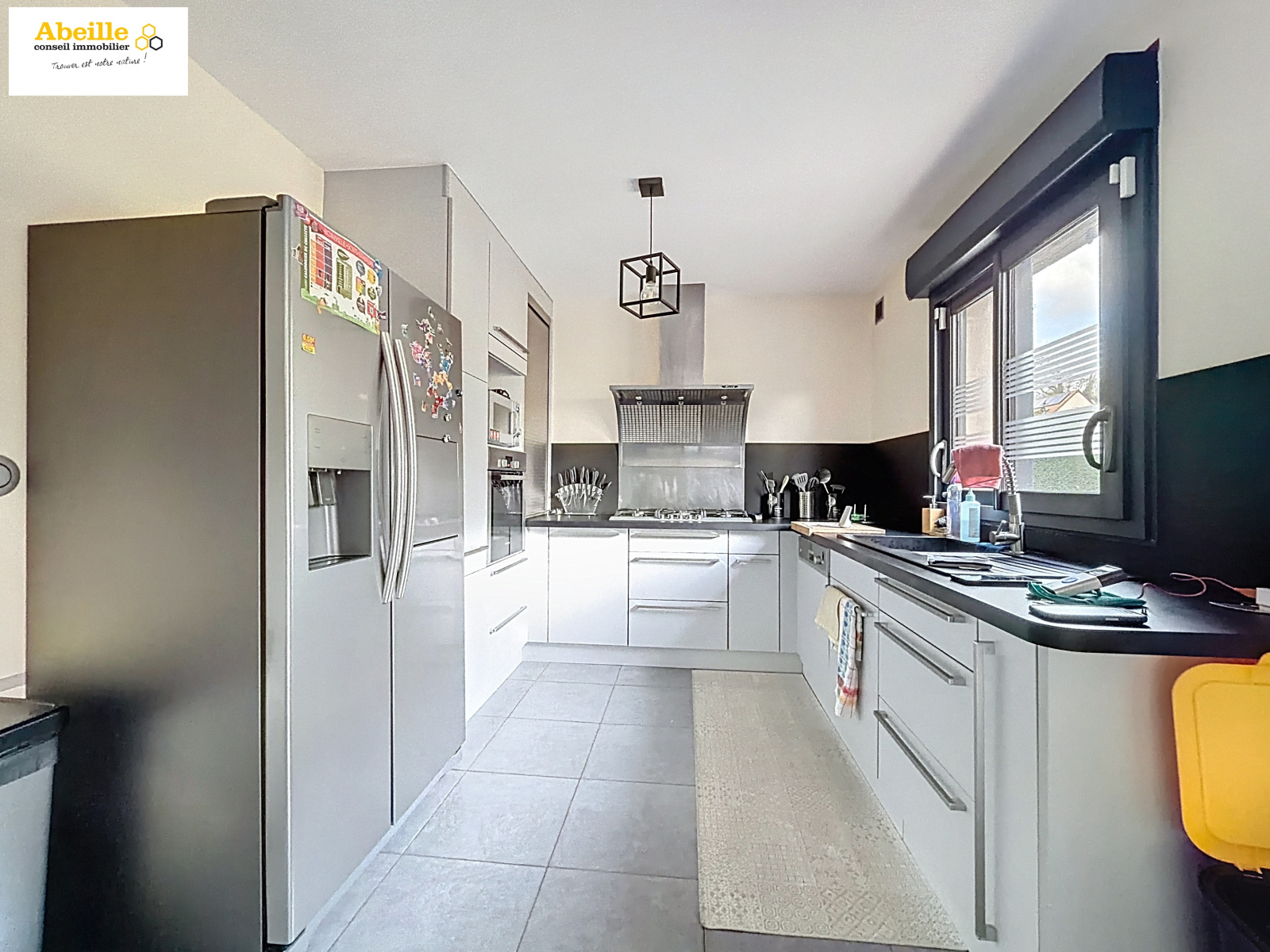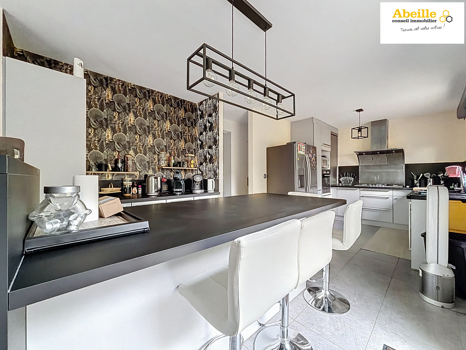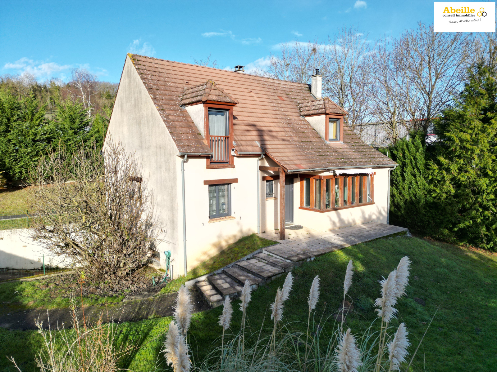 Maison année 1995 aux beaux volumes comprenant : entrée, salon/salle à manger avec poêle a granules, cuisine ouverte aménagée équipée. Chambre, salle d'eau et wc. A l'étage 3 chambres dont une suite parentale avec salle d'eau ainsi qu'une salle de bains avec douche, wc. Sous-sol total avec garage 3 voitures et buanderie. Double vitrage, climatisation réversible, belles prestations. Terrain clos de 984m2.