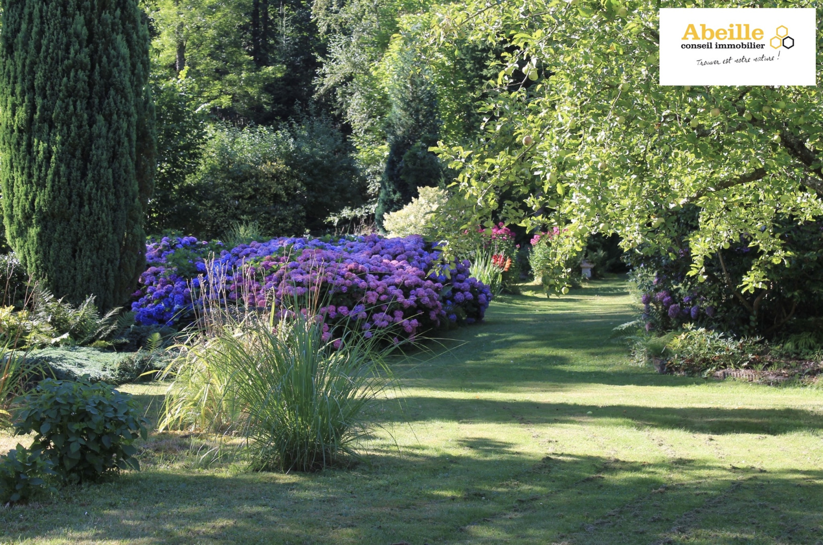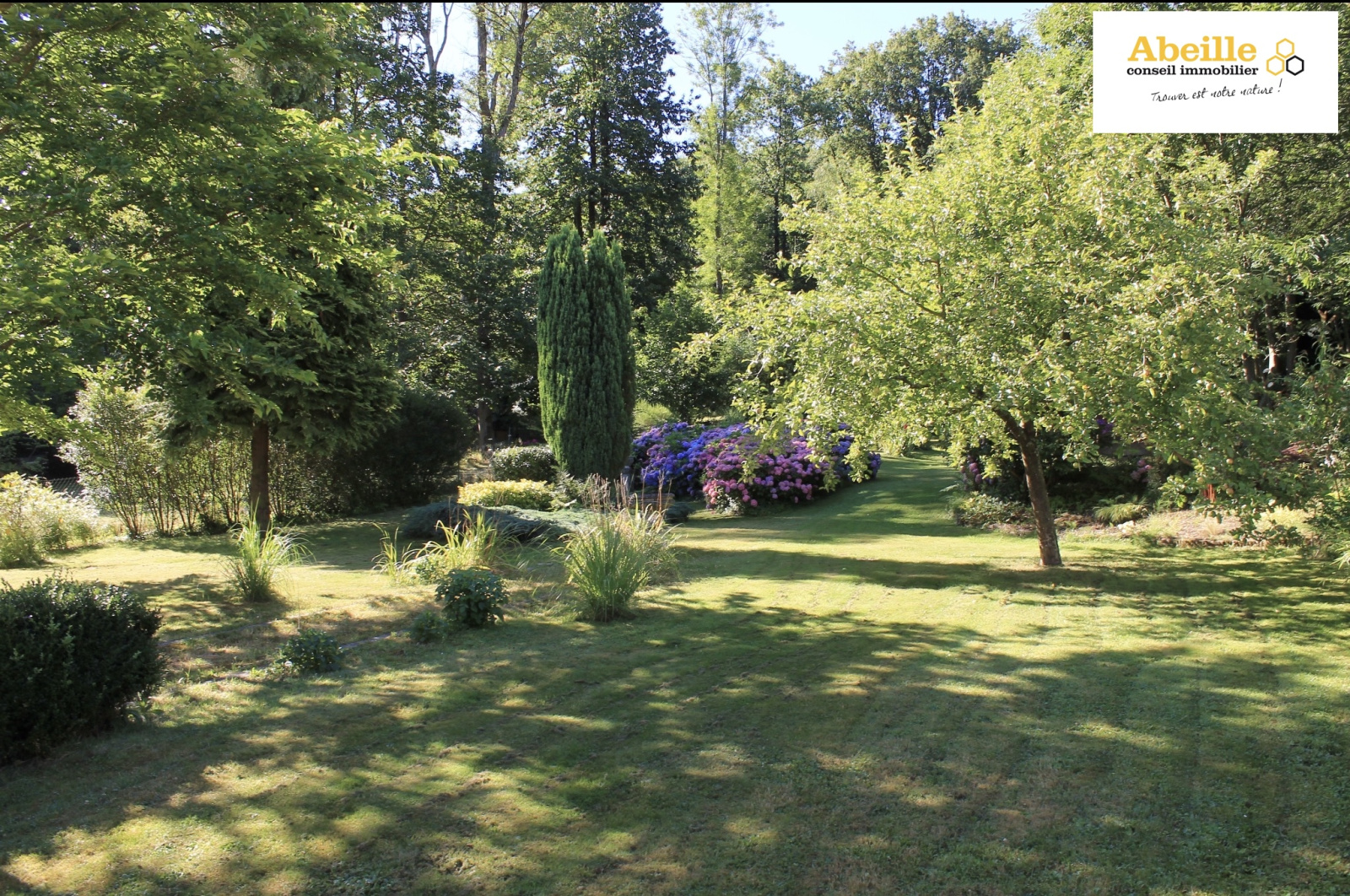 La maison est équipée de double vitrage et bénéficie d’une exposition sud. L’ensemble est implanté sur un terrain clos et arboré de 2 369 m².