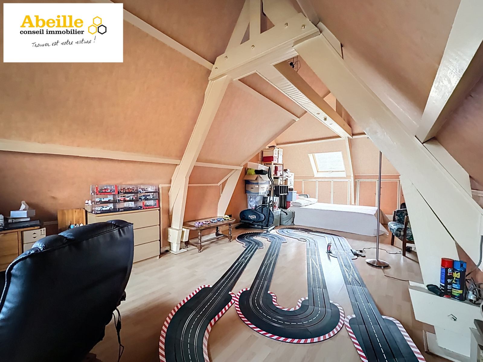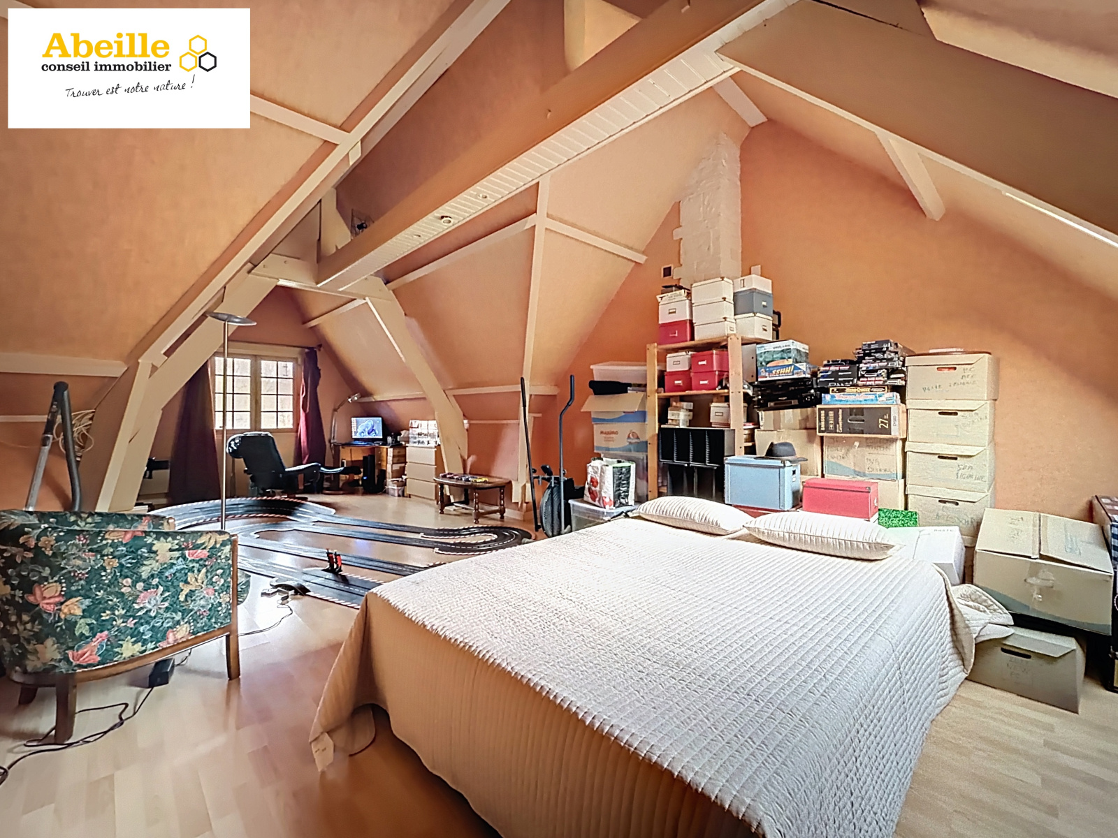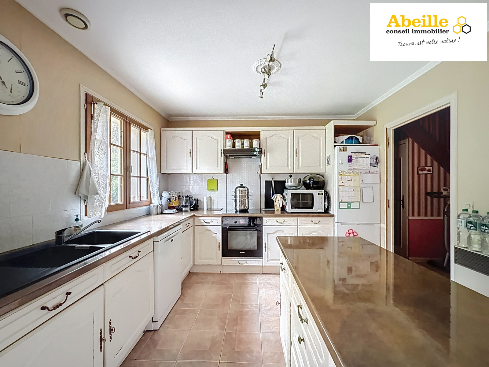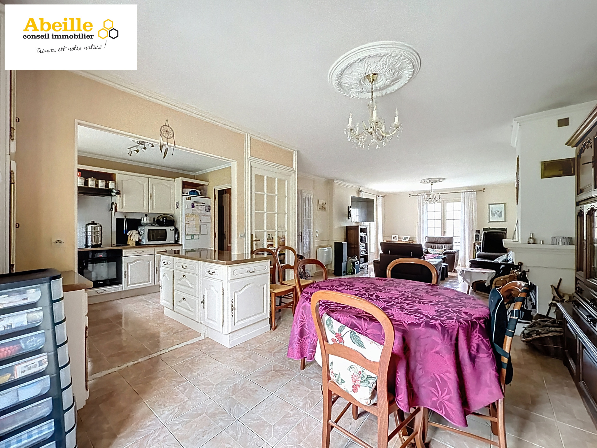 Édifiée en 1988, cette maison traditionnelle sur sous-sol total offre des volumes confortables et une distribution fonctionnelle. Le rez-de-chaussée se compose d’une entrée cathédrale, d’un vaste salon/salle à manger d’environ 40 m² avec cheminée insert et accès direct à la terrasse, d’une cuisine aménagée et équipée ouverte, d’un WC indépendant, ainsi que d’une chambre avec placards et salle de bains privative.