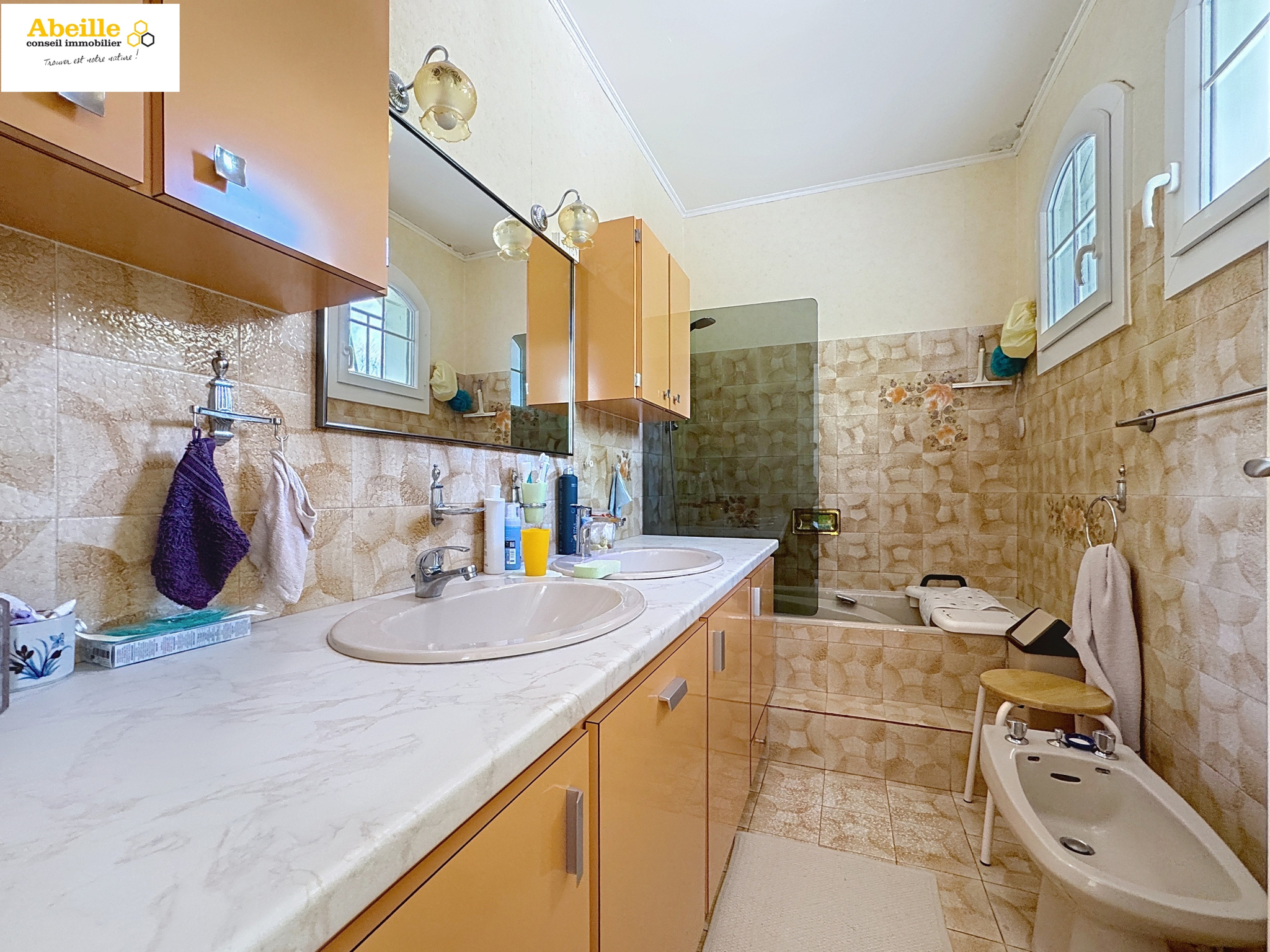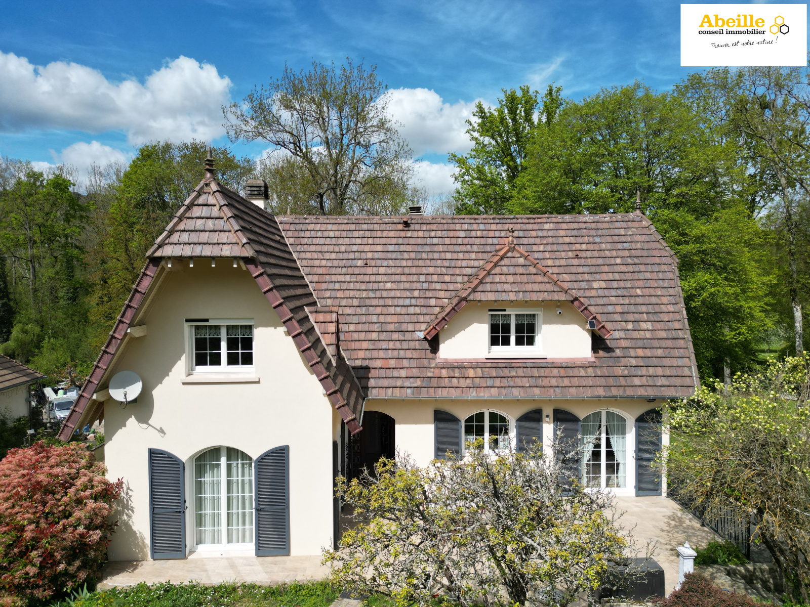 Belle maison traditionnelle de 120m2 (137m2 au sol) sur sous-sol total comprenant au rez-de-chaussée : une entrée, salon/salle à manger avec cheminée. Cuisine indépendante aménagée équipée, chambre avec salle d'eau, wc séparés. A l'étage : 2 chambres, bureau avec mezzanine, salle d'eau et lingerie. Sous-sol total avec garage, cave et buanderie. Autre garage indépendant, terrain clos de 2310m2. Dv Pvc, climatisation, nouveauté à visiter !