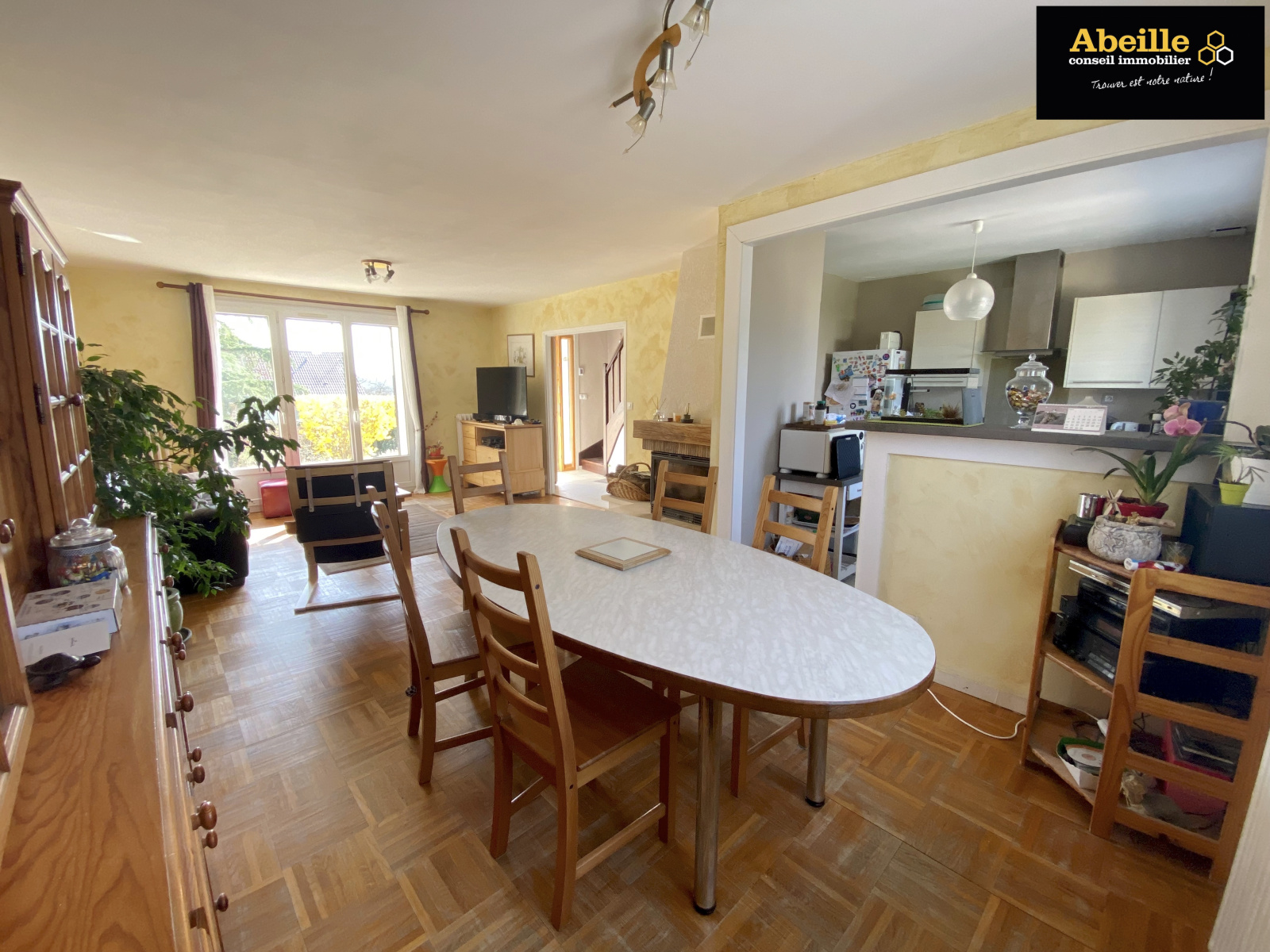 Une maison d’habitation comprenant : entrée/dégagement, salon/séjour avec cheminée insert cuisine ouverte aménagée, 3 chambres, salle d’eau Wc. A l’étage : palier, 2 chambres dont une avec douche, Wc. Sous sol total avec garage, atelier et salle de jeux. Terrain clos de 793m2. Au calme exposition sud, idéal grande famille !
