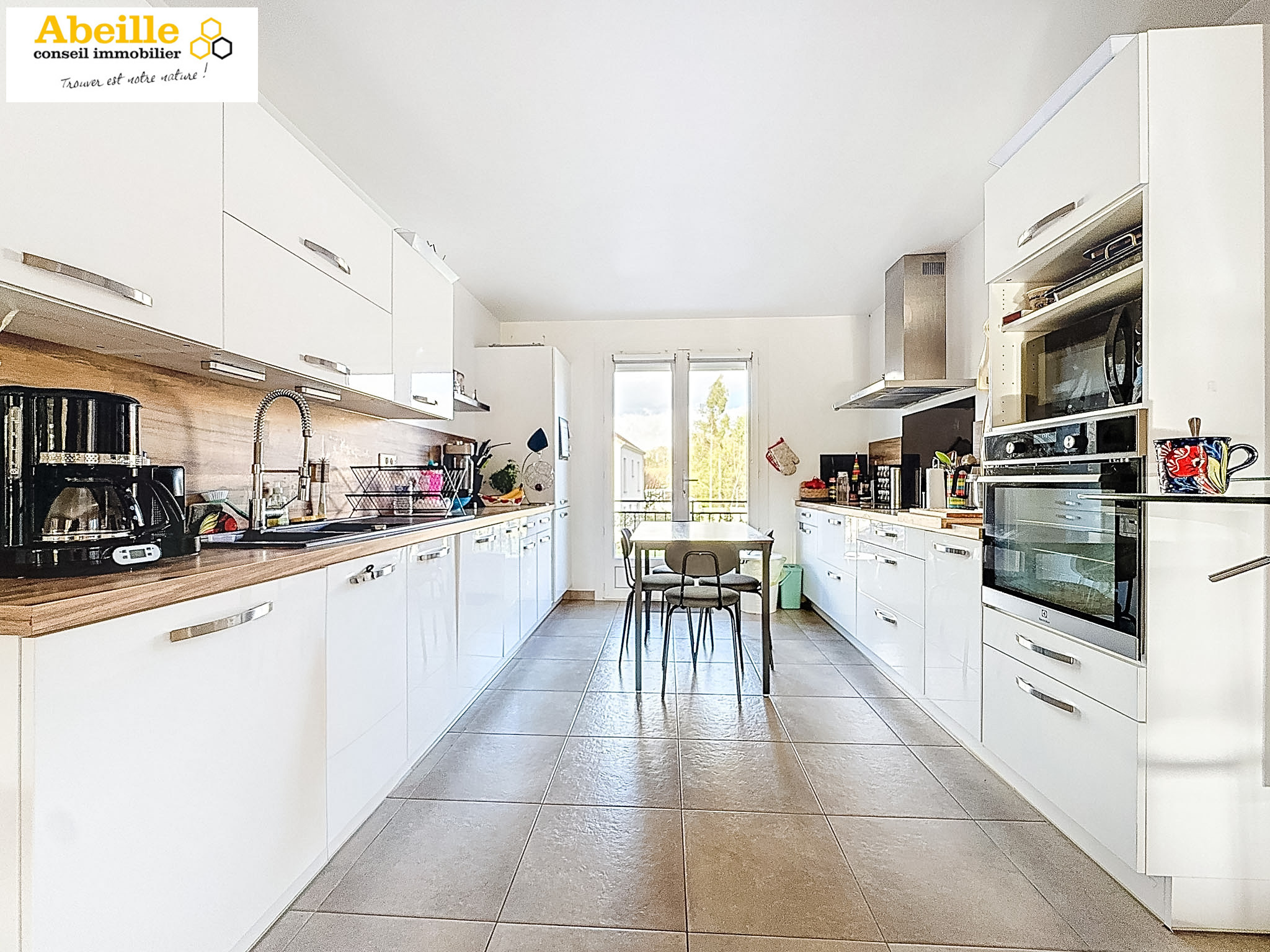 Au rez-de-chaussée, vous trouverez une entrée, un grand salon / salle à manger d’environ 60 m² avec baies vitrées donnant sur une terrasse, offrant une vue agréable sur le jardin et la sensation d’être en permanence en extérieur, une cuisine ouverte aménagée et équipée, un WC ainsi qu’une chambre.