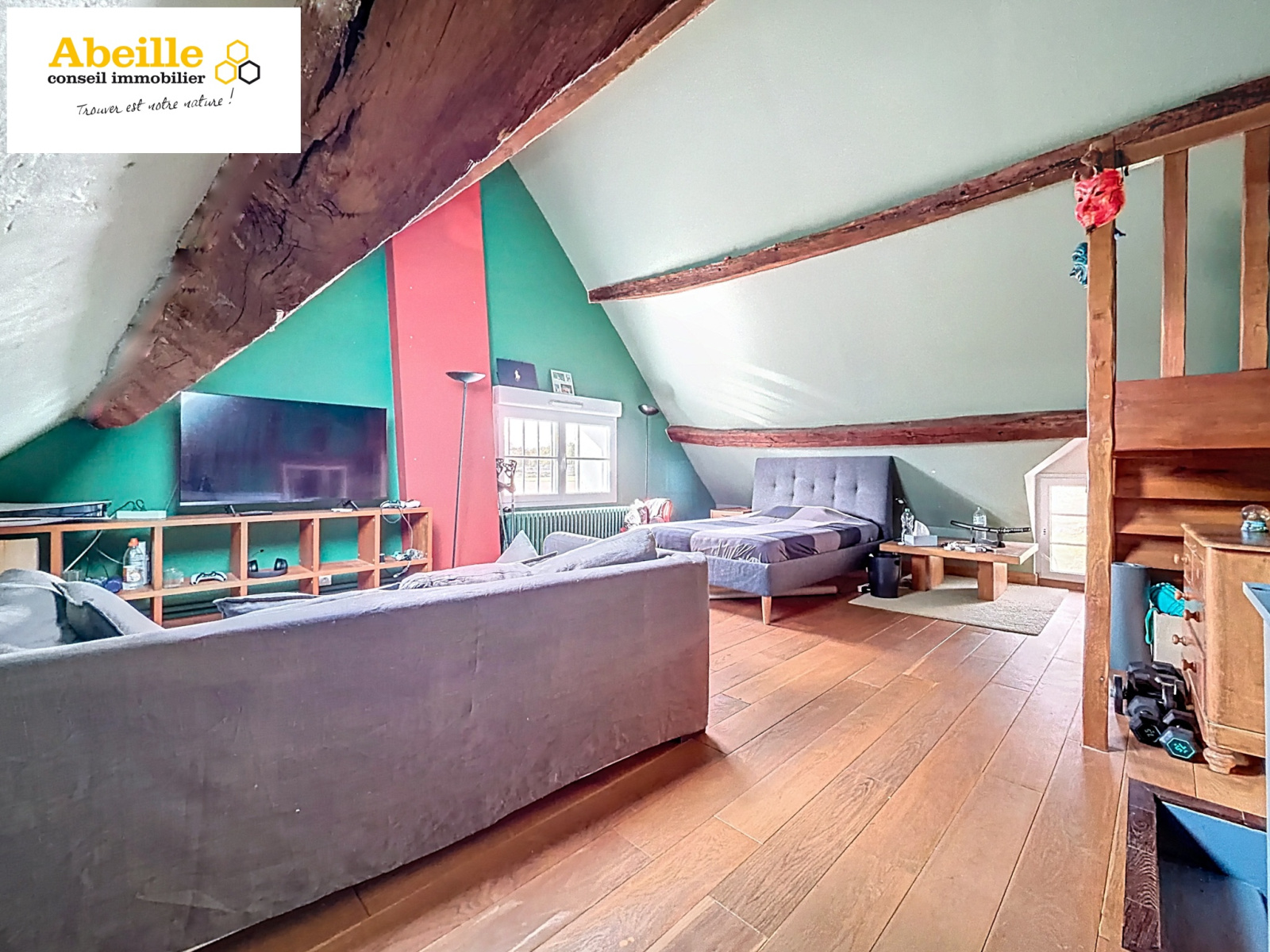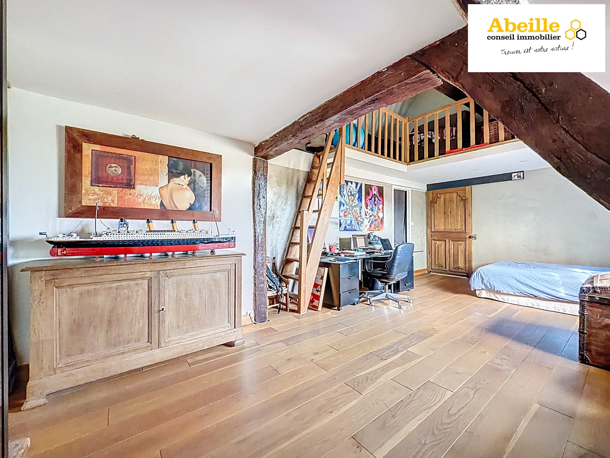 À l’étage, un dégagement distribue un WC, une chambre bénéficiant d’un grenier en duplex permettant l’aménagement d’une salle d’eau, une chambre avec rangements et salle de bains privative, une salle de jeux, une lingerie, ainsi qu’une vaste pièce aménagée d’environ 36 m², complétée par une mezzanine d’environ 22 m². Cet espace dispose d’un accès extérieur indépendant, idéal pour un usage professionnel, un logement annexe ou un espace de loisirs.