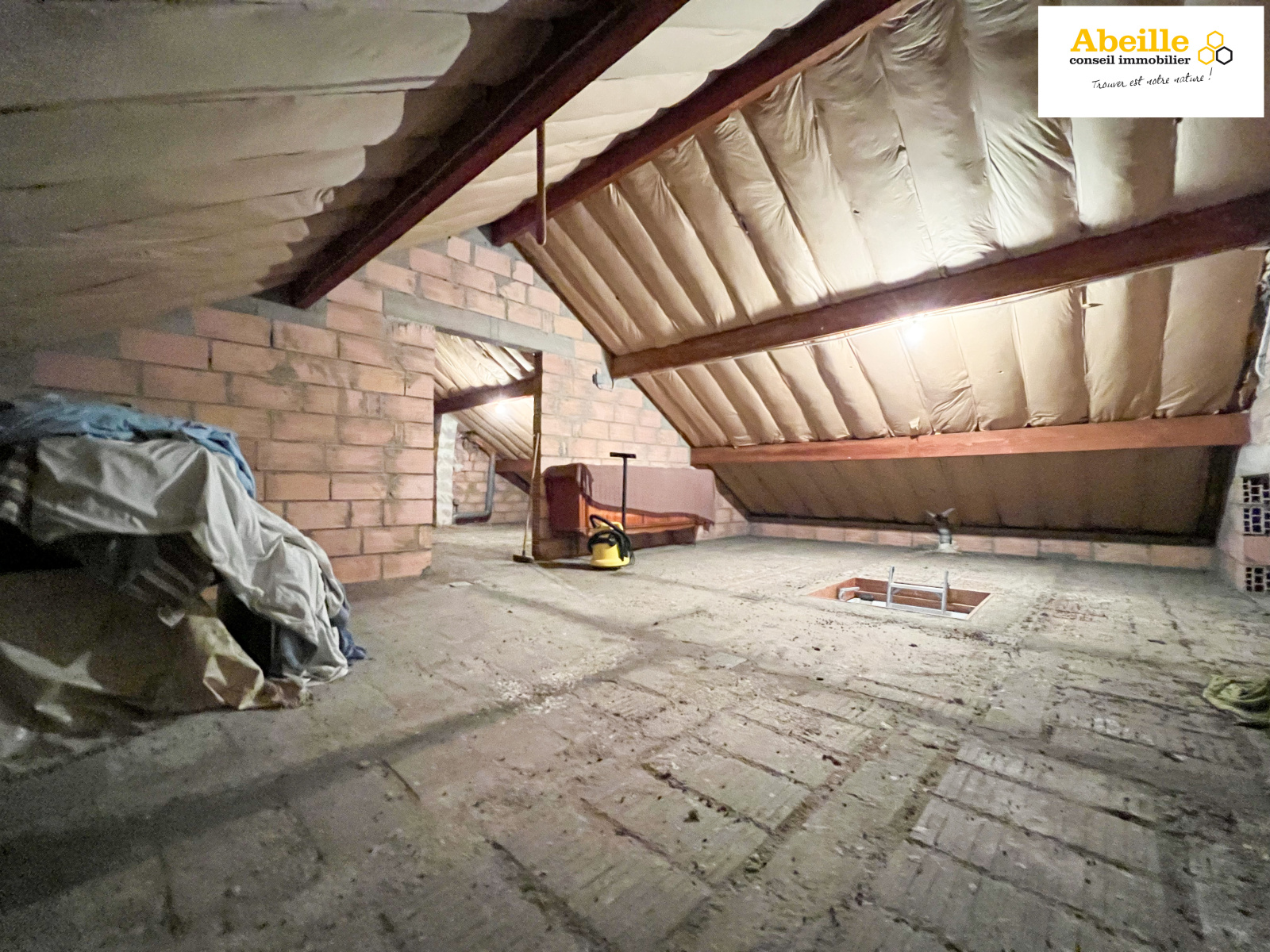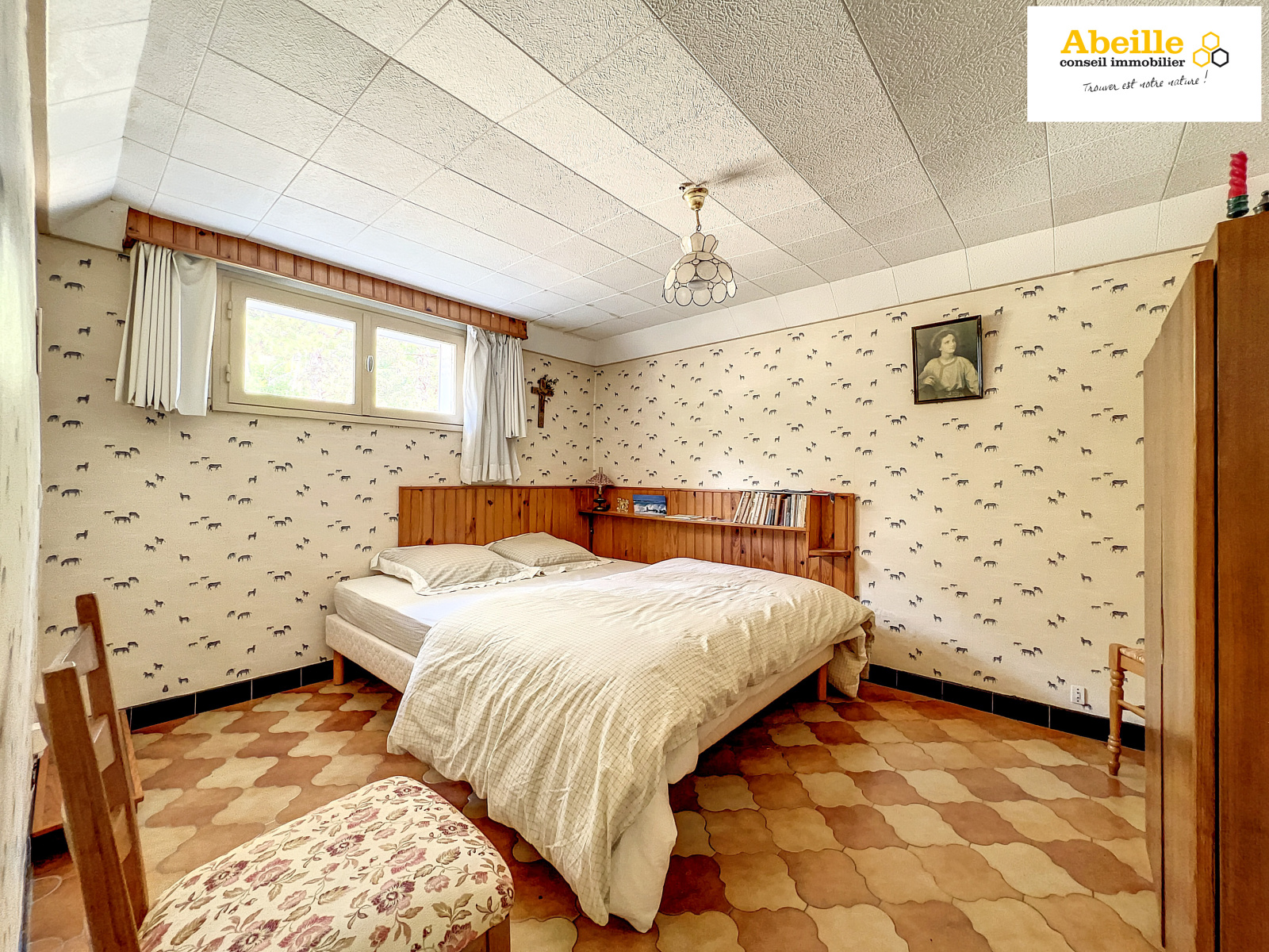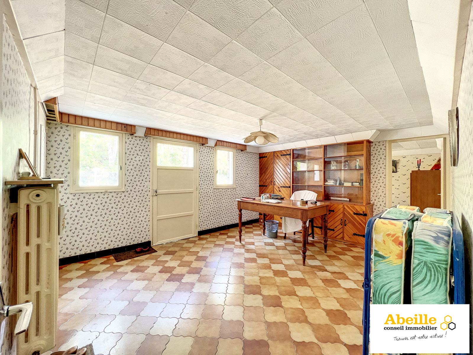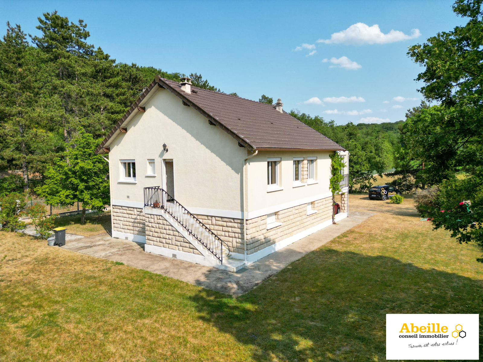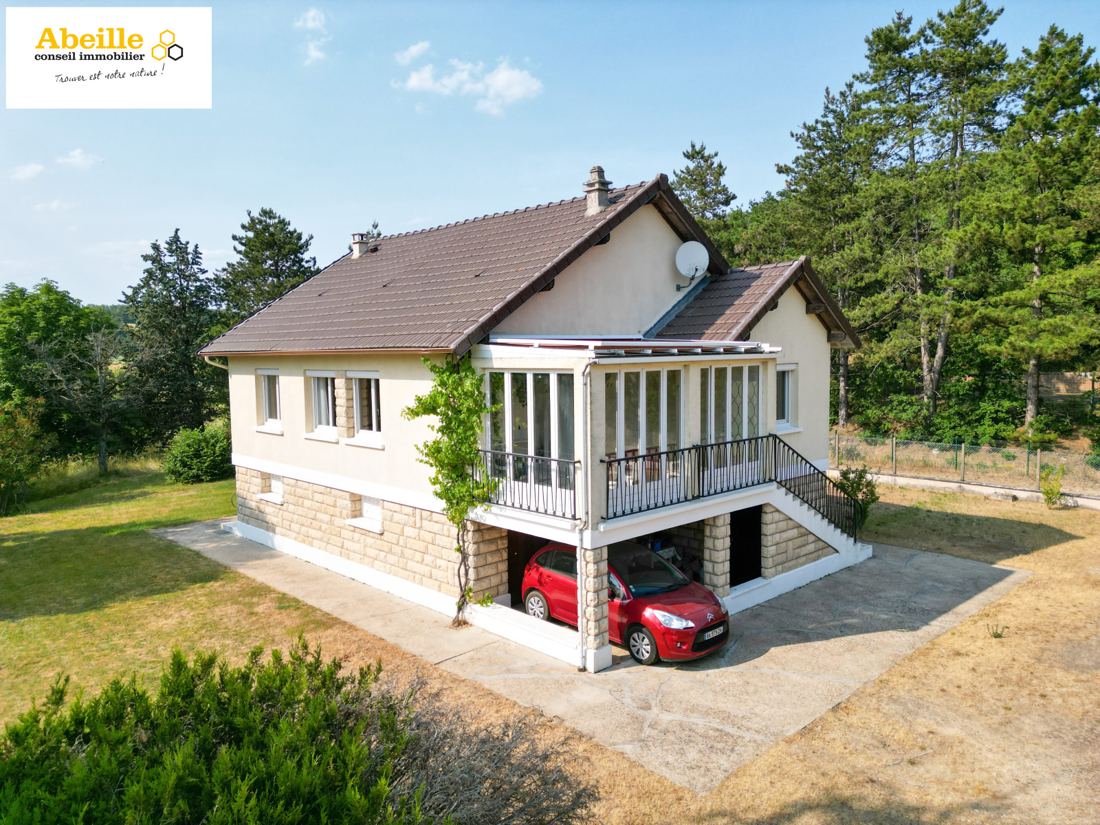 Edifiée en 1968, maison traditionnelle offrant 118 m2 hab. avec une véranda de 14 m2 comprenant au rez-de-chaussée : double entrée traversante, dégagement avec placard, salon, cuisine aménagée, trois chambres, w-c, salle de bains. Au-dessus combles divisées en deux greniers de 22 m2 et 25 m2 à hauteur de 1m80. En sous-sol : bureau avec accès extérieur (17 m2), chambre (10,5 m2), dégagement, chaufferie, buanderie, cellier, garage 1 voiture. Dv Pvc volets roulants. Le tout clos, arboré et parfaitement entretenu sur 10075 m2. Vue dégagée.